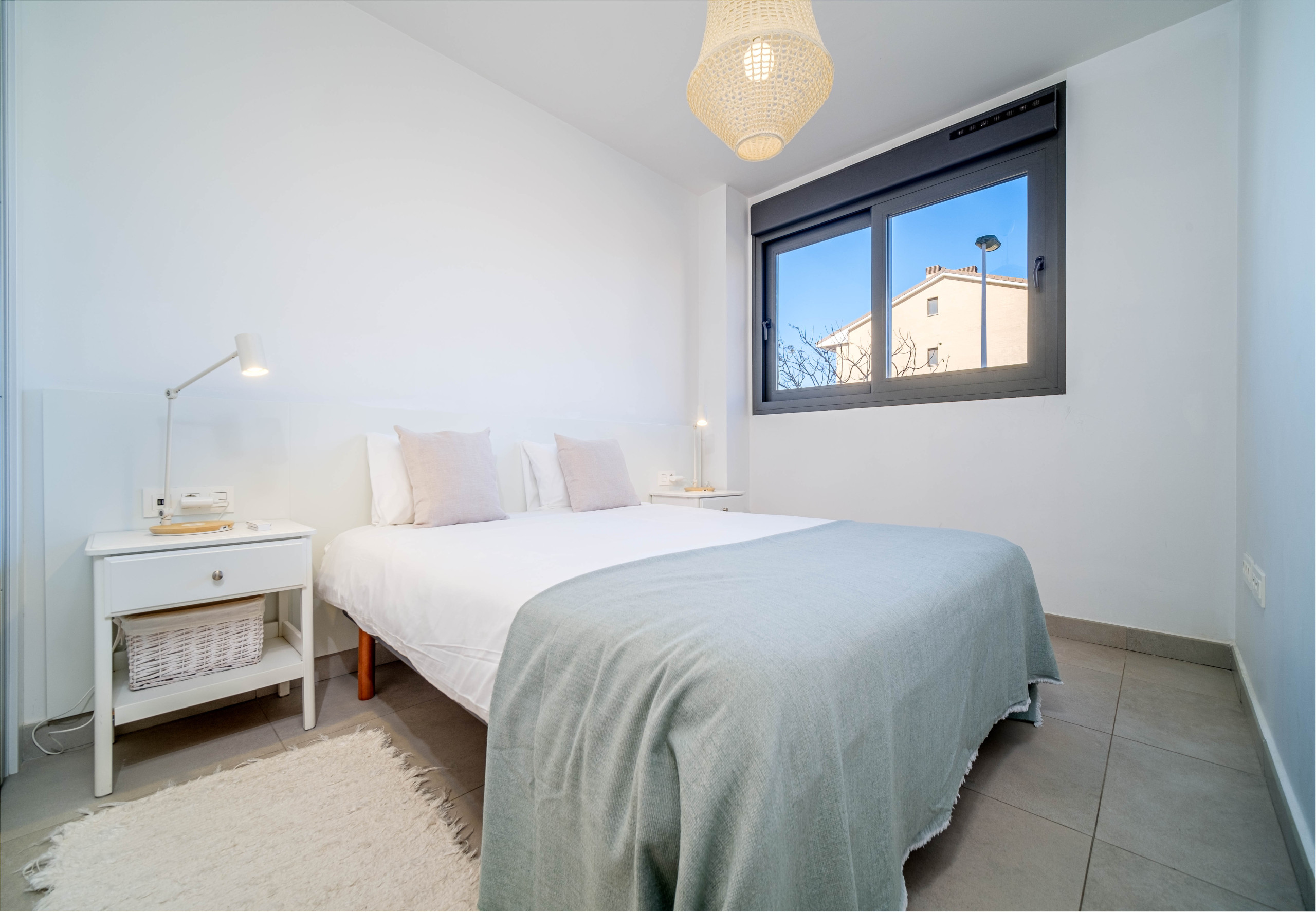 El dormitorio principal dispone de cama de matrimonio, armarios empotrados y acceso directo a la terraza. El segundo dormitorio cuenta con dos camas individuales, mientras que el tercero ofrece una práctica litera, ideal para niños.