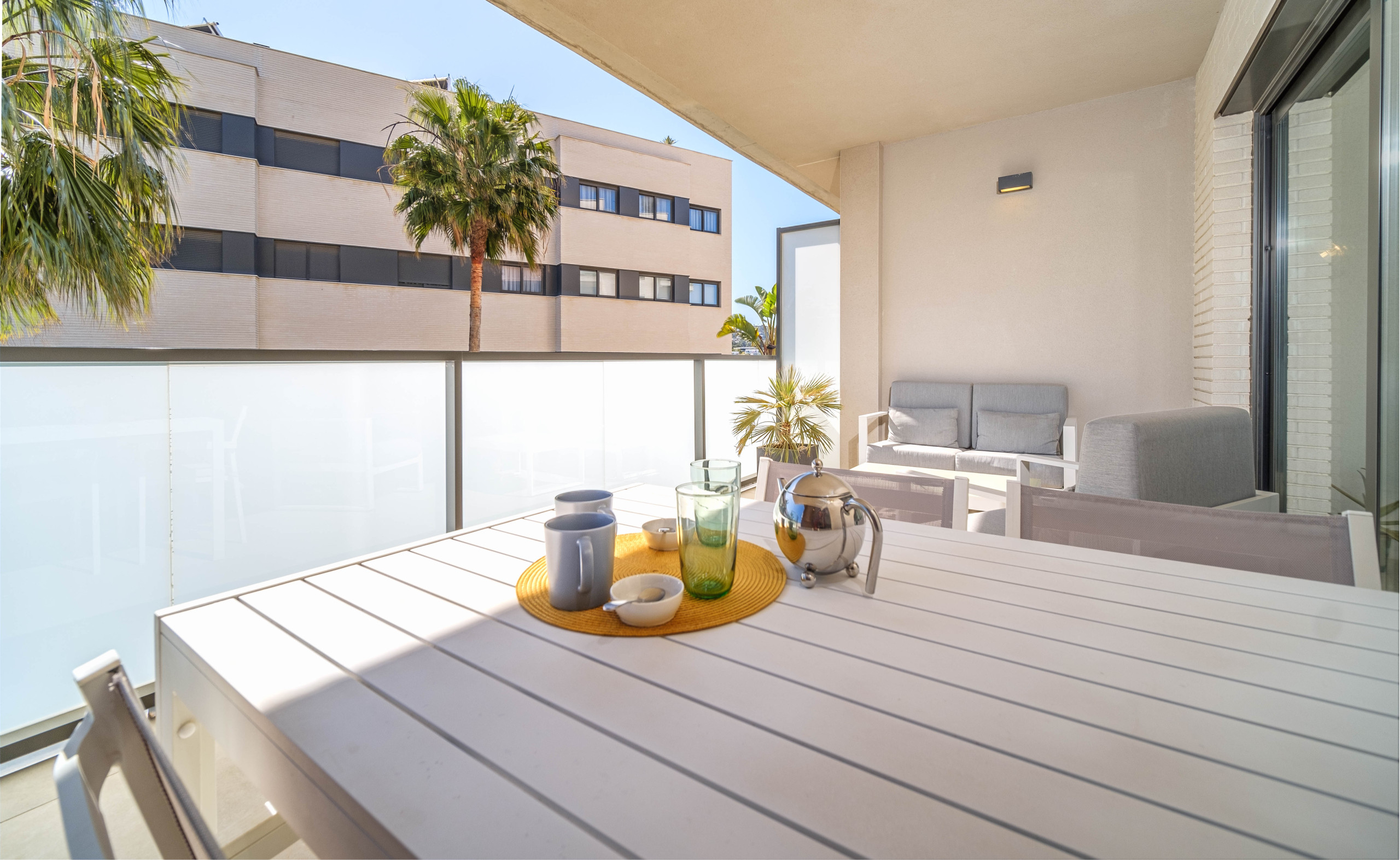 Este estiloso, moderno y luminoso apartamento, tiene 89 m² y ha sido recién reformado y decorado. La vivienda, distribuida en un solo nivel, cuenta con 3 preciosos dormitorios y 1 baño con ducha, dando cabida hasta 6 personas. El dormitorio principal cuenta con una cama de matrimonio, armarios empotrados y salida directa a la terraza: el segundo dormitorio posee dos camas individuales y el tercero una práctica litera. El apartamento también ofrece una cocina americana moderna y totalmente equipada con nevera, microondas, horno, congelador, lavadora, lavavajillas, vajilla y cubertería, utensilios de cocina, cafetera, tostadora, hervidor de agua, y platos y cuencos. El salón decorado con mucho gusto, dispone de un cómodo sofá, TV de pantalla plana, aire acondicionado (solo salón), WiFi gratis y puertas dobles que se abren a una maravillosa terraza. En la terraza podemos disfrutar de una amplia mesa de comedor y maravillosas vistas a la piscina, el mar y la montaña. En la zonas comunes de la urbanización se puede disfrutar de un impresionante jardín con césped, zona infantil y una gran piscina, vallada y con zona para niños.