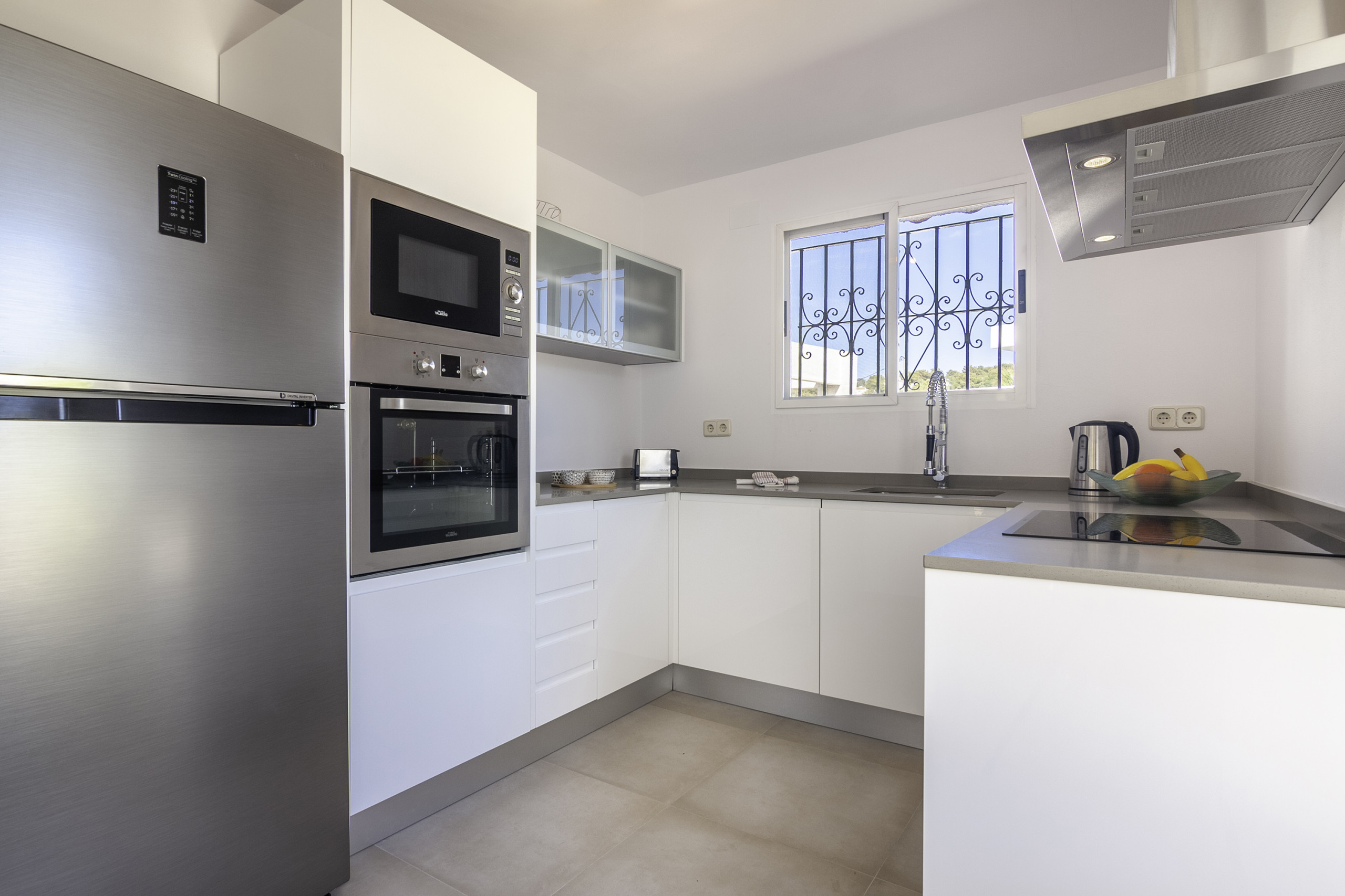 La cocina independiente, es de inducción, está equipada con nevera, microondas, horno, congelador, lavadora, secadora, lavavajillas, vajilla/cubertería, utensilios/cocina, cafetera, tostadora y hervidor de agua.