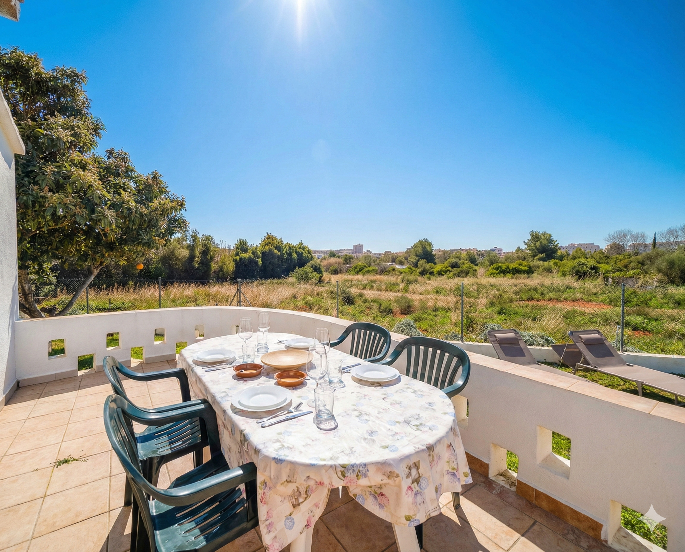 En el exterior se encuentra un estupendo terreno vallado que garantiza privacidad y tranquilidad. Destaca su bonito jardín y la piscina privada, situada muy cerca de la zona de barbacoa de obra, ideal para disfrutar de comidas al aire libre. La propiedad cuenta además con una terraza soleada con agradables vistas despejadas, así como una segunda terraza interior cubierta con mesa de comedor. Dispone también de mobiliario de jardín y zona de comedor exterior, creando diferentes espacios para relajarse y disfrutar del clima mediterráneo.