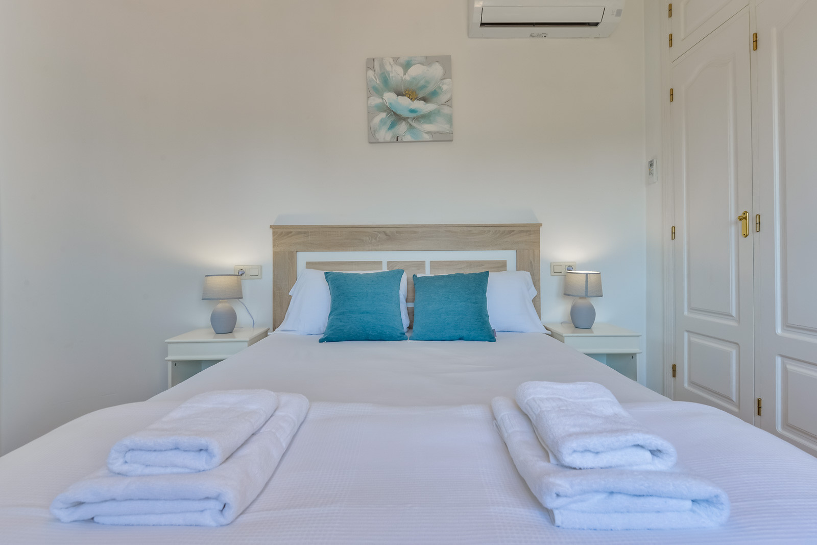 La vivienda cuenta con 144 m2, recién reformada, y se distribuye en: Un salón comedor con Smart tv, chimenea decorativa, mesa para comer y grandes ventanales por donde entra mucha luz natural, aire acondicionado y ventilador en el techo. Cocina independiente (Con salida directa al exterior), un baño con ducha. Tres habitaciones, la primera con cama de matrimonio, aire acondicionado y baño con bañera, la segunda habitación dispone de una cama de matrimonio y la tercera habitación con dos camas individuales.