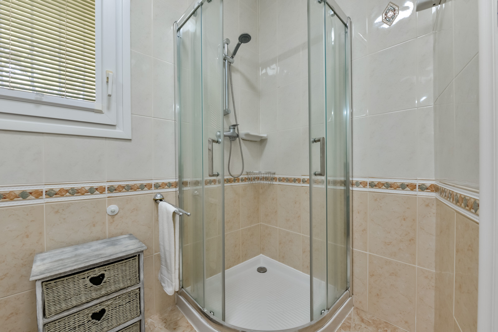 Con 198 m2 de vivienda, la villa se distribuye en dos plantas comunicadas por una bonita escalera interior. Desde la entrada, un agradable recibidor, nos lleva aun gran salón comedor con zona de Tv, amplios sofás blancos, aire acondicionado y una gran mesa para comer o cenar en el interior de la villa. Una cocina completamente equipada e independiente con una pequeña lavandería. Un baño completo, una habitación con cama de matrimonio y aire acondicionado y una segunda habitación con cama de matrimonio y aire acondicionado. Subiendo por las escaleras internas, accedemos a la habitación principal de la villa con cama de matrimonio, baño completo, aire acondicionado y una agradable terraza privada donde relajarse en una agradable noche.