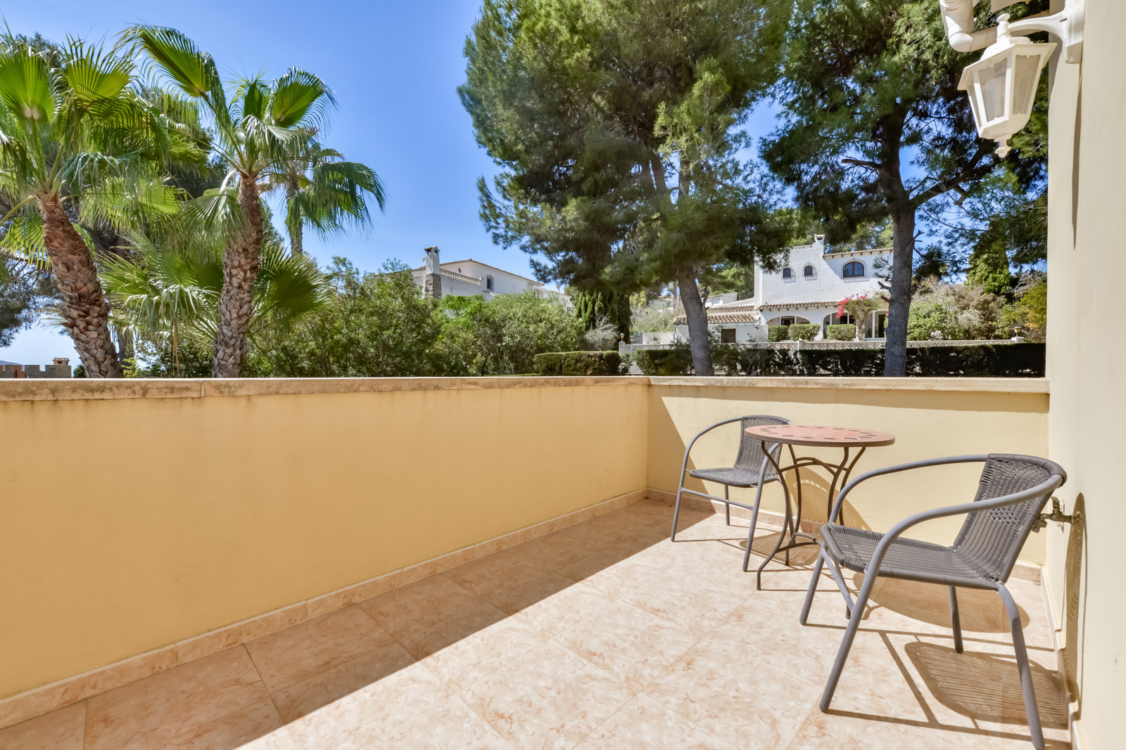 Con 1.000 m2 de parcela, y bastante privacidad, la villa ofrece varios espacios para disfrutar del aire libre. Desde el salón accedemos a una terraza techada con sofás de jardín y una agradable vista abierta a toda la bonita zona residencial, bajando por un tramo de escaleras llegamos a la zona de piscina con césped natural, una ducha exterior, y 6 hamacas para tomar el sol junto al agua. En la parte posterior de la villa, encontraremos un simpático estanque con peces, un amplio espacio con arboles maduros, y una zona de bbc con mesa y sillas para 6 comensales. La villa dispone de espacio para aparcar en su interior al aire libre.Se encuentra a 2 m de la playa de roca, 2 km de la ciudad "Moraira", 2 km del restaurante "Brevis", 2 km del supermercado, 2 km de la playa de arena "Playa de Moraira", 4 km del campo de Golf "Club de Golf Ifach".