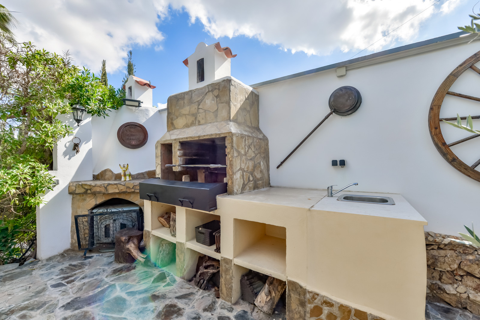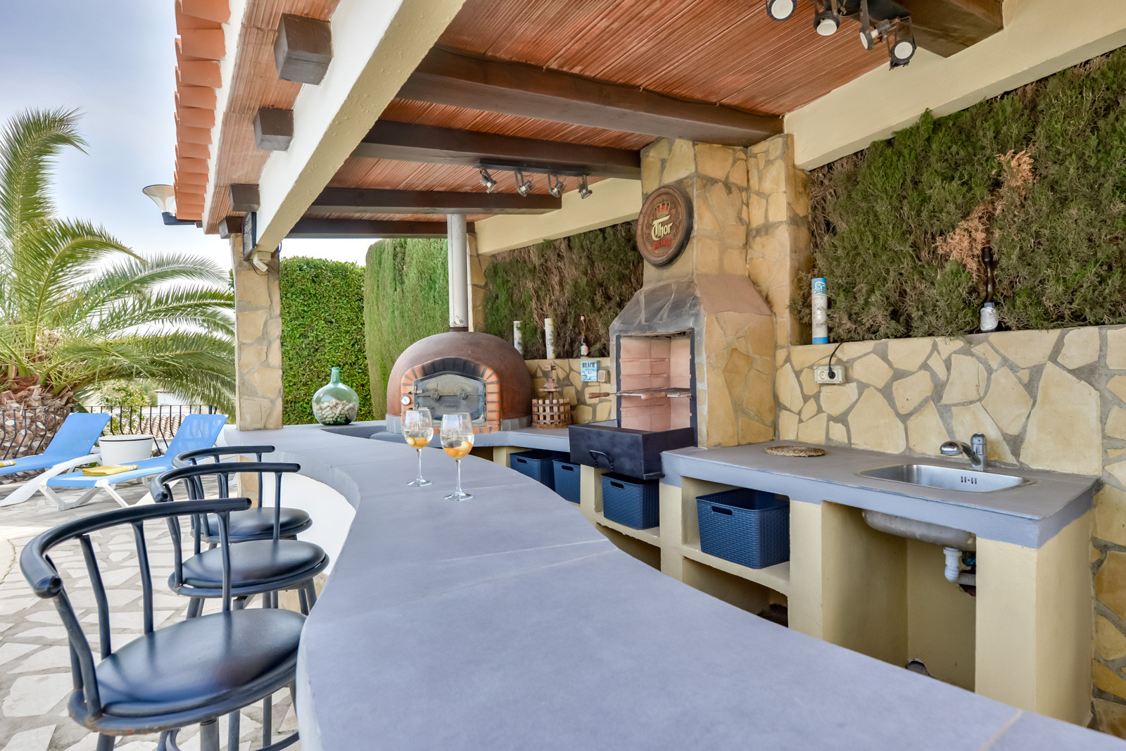 Con 1.125 m2 de parcela, la villa cuenta con varias zonas ajardinadas, árboles frutales por toda la finca y espacios recreativos para descansar y reunirse con familia y amigos. La zona de piscina cuenta con un fantástico bar con barbacoa y fregadero de exterior donde pasar momentos divertidos frente a la piscina, así como una mesa de terraza techada para comer y cenar al aire libre, hamacas para tomar el sol, ducha de piscina y un agradable rincón con asientos de exterior. Bajando por un tramo corto de escaleras, se accede a la parte inferior del jardín donde encontramos un nuevo espacio exterior con una segunda barbacoa para grandes asados y mesa para cenar que se convierte en un bonito lugar de reuniones familiares en el exterior. La parcela dispone de espacio techado para aparcar dos vehículos en su interior.