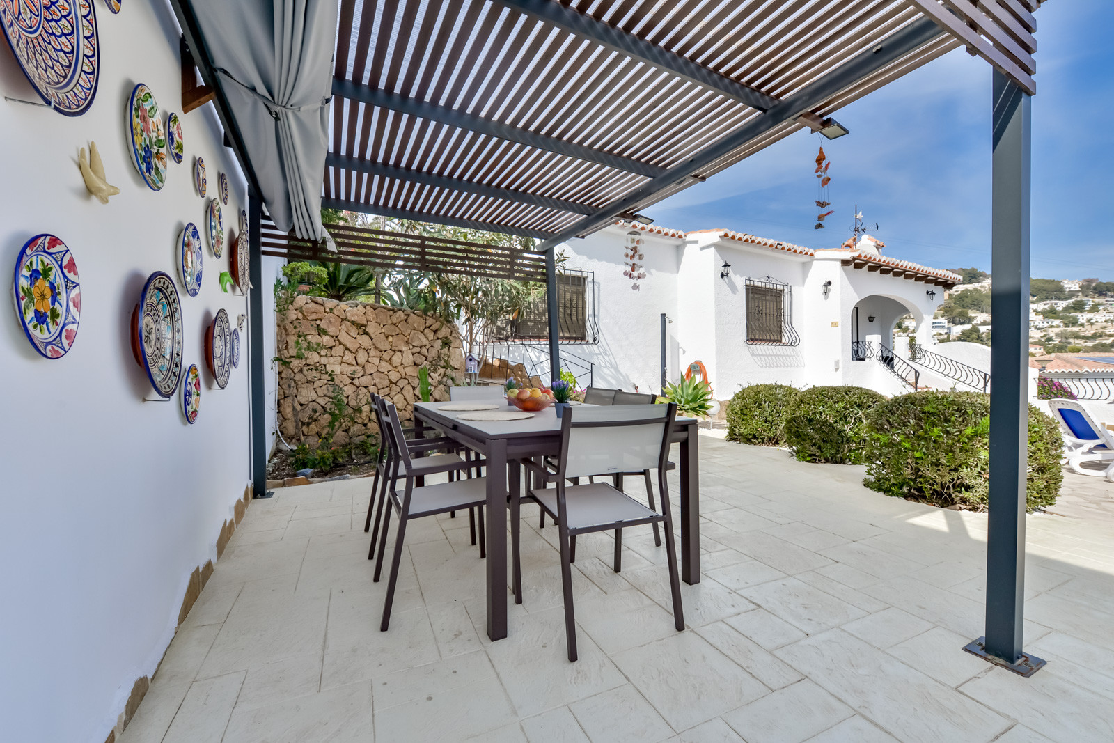La villa Rouillon posee 4 dormitorios y capacidad para 8 personas. Situada en un entorno tranquilo, rodeado de naturaleza y dentro de una urbanización en Moraira, es el lugar ideal para descansar y disfrutar de los amplios espacios exteriores que ofrece esta agradable villa.