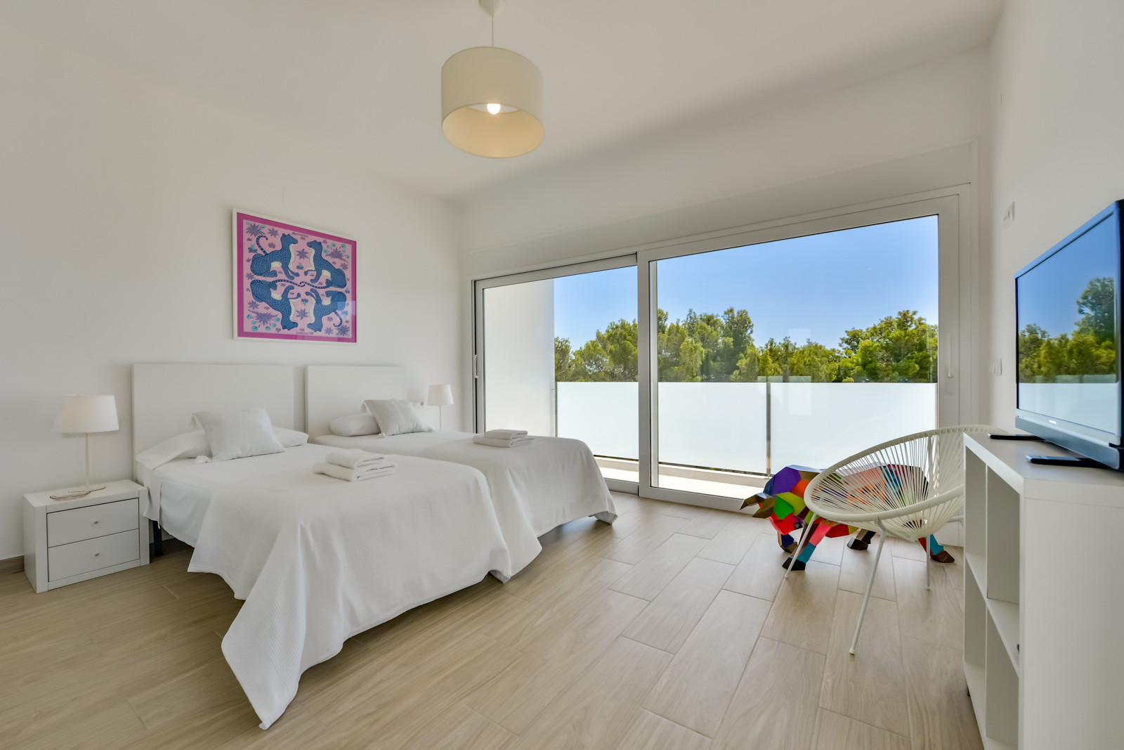 Die Villa Dos Angeles in Benissa hat 3 Schlafzimmer und Platz für 6 Erwachsene und 2 Kinder. Eine schöne Villa, komfortabel und komplett ausgestattet, um Ihre besten Momente mit Ihrer Familie und Freunden in einer ruhigen und gut kommunizierten Urbanisation zu leben.Verteilung der Unterkunft:Mit 300 m2 Wohnfläche ist die Villa auf zwei Etagen verteilt, die durch eine interne Treppe verbunden sind. In der ersten Etage befindet sich ein geräumiges und helles Wohnzimmer mit einer Sitzecke mit Sofas, TV und Essbereich. Vom Wohnzimmer aus gibt es einen Zugang zu einem schönen Lesezimmer. Eine voll ausgestattete und sehr helle Küche, mit Zugang nach draußen. Ein komplettes Badezimmer mit Dusche, ein Schlafzimmer mit Doppelbett (zwei Betten zusammen), Klimaanlage und ein Etagenbett mit zwei Etagenbetten für Kinder. Ein zweites Schlafzimmer mit Doppelbett (zwei Betten zusammen) und Klimaanlage.Über eine Innentreppe gelangt man in den zweiten Stock, wo sich das dritte Schlafzimmer mit Doppelbett, Klimatisierung, eine Terrasse und ein komplettes Badezimmer mit Dusche befinden.Außenbereich der Villa: Mit 924 m2 Grundstücksfläche verfügt die Villa über einen großen Parkplatz und einen überdachten Stellplatz. Von der Hauptebene aus gelangt man auf eine überdachte Terrasse mit einer Sofaecke im Freien, wo man die Sommerabende in einer sehr entspannten Atmosphäre verbringen kann, und vor dem Pool, einem Essbereich im Freien und dem schönen Pool mit Treppe zum Zugang ins Innere, Grill und Liegewiese.Es befindet sich 100 m vom Restaurant, 400 m vom Supermarkt "Pepe la Sal", 700 m vom Sandstrand "Playa Cala Baladrar, Benissa", 2 km vom Golfplatz "Club de Golf Ifach", 3 km von der Stadt, 92 km vom Flughafen "Aeropuerto de Alicante-Elche" und 126 km vom Flughafen Valencia entfernt.Andere Dienstleistungen:Es verfügt über Garten, Gartenmöbel, eingezäuntes Grundstück, 40 m² Terrasse, Grill, kostenlosen Internetzugang (wifi), Zentralheizung, Klimaanlage, privaten Swimmingpool, Parkplatz im Freien im selben Gebäude, 1 TV, Satellitenfernsehen (Sprachen: Spanisch, Englisch, Deutsch, Niederländisch, Französisch). Die unabhängige Küche ist mit Mikrowelle, Backofen, Gefrierschrank, Waschmaschine, Geschirrspüler, Geschirr/Besteck, Kaffeemaschine, Toaster, Wasserkocher und Saftpresse ausgestattet.