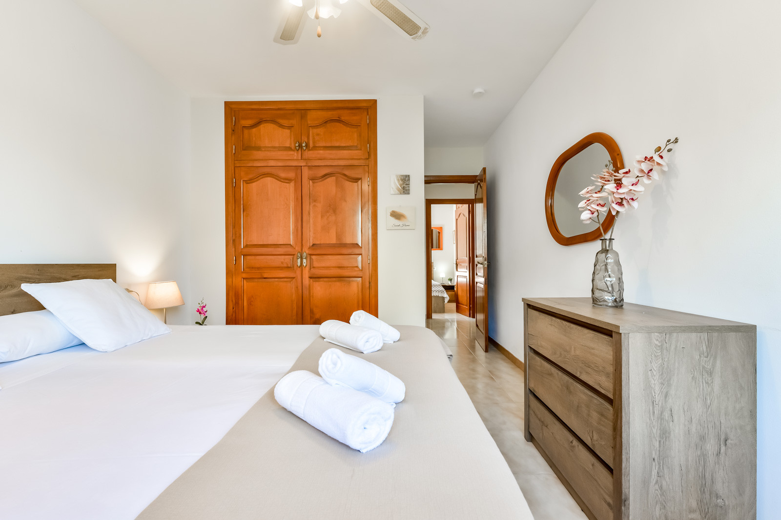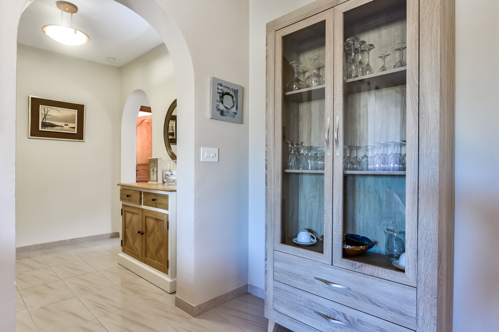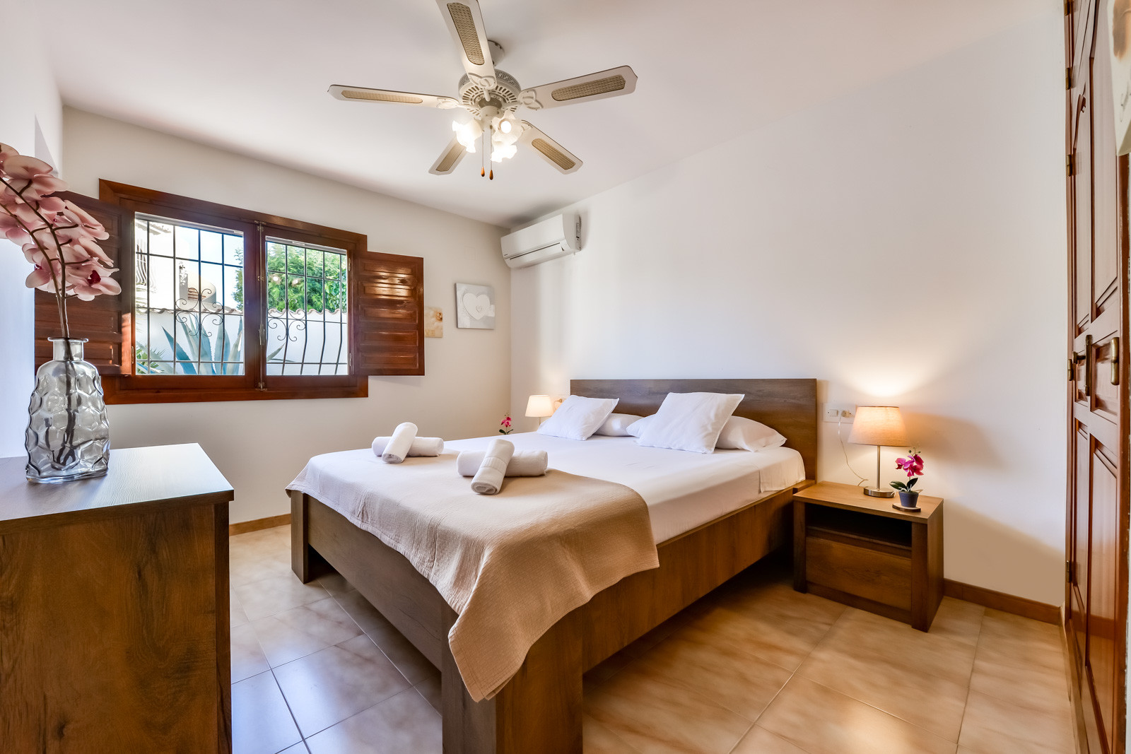Die Verteilung der Villa Acaepa ist wie folgt: Mit 122 m2 finden Sie im Haupthaus ein vollständiges Badezimmer mit Dusche, ein Schlafzimmer mit Doppelbett, ein zweites Schlafzimmer mit zwei Einzelbetten, Wohnzimmer, moderne und vollständig ausgestattete Küche und eine angenehme Terrasse, die Sie sowohl im Sommer als auch im Winter nutzen können, da sie vollständig überdacht ist. Im oberen Stockwerk und vollständig unabhängig mit einer Treppe im Freien befindet sich das dritte Schlafzimmer mit einem komfortablen Doppelbett und offenen Blicken auf Berge und Meer sowie ein Badezimmer mit Dusche. Die Villa wurde im Jahr 2019 vollständig renoviert, und sowohl die Möbel als auch Badezimmer, Küche usw. sind komplett neu. Es gibt eine Klimaanlage im Wohnzimmer.
