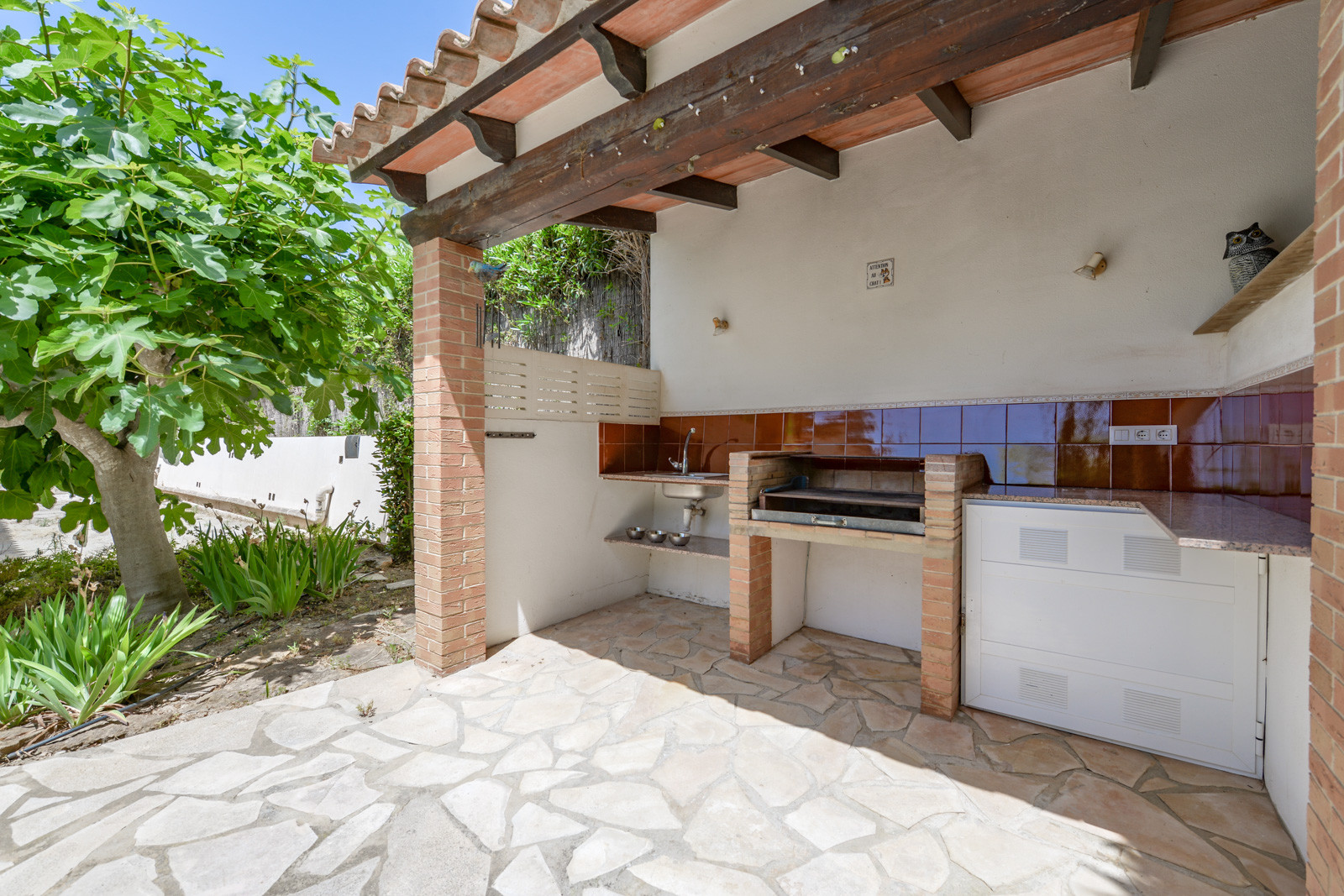 Mit einem Grundstück von 1.091 m2 verfügt die Villa Acacias über einen schönen Garten mit Naturrasen, einen schönen Pool und eine überdachte Terrasse mit einem Tisch für Mahlzeiten im Freien. Auf der Rückseite der Villa befindet sich eine kleine Sommerküche mit Spüle und Bänken.