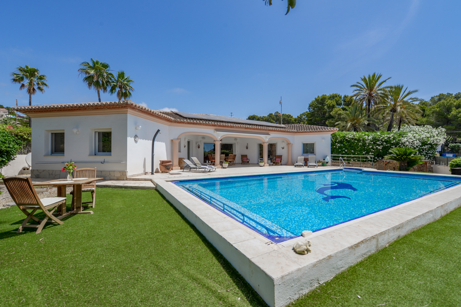 Verfügt über Garten, Gartenmöbel, eingezäuntes Grundstück von 500 m², Terrasse von 60 m², Grill, Grillplatte, kostenlosen Internetzugang (WLAN), Heizung, elektrische Heizkörper, privates Schwimmbad, Parkplatz im Freien im selben Gebäude, 1 TV, Satelliten-TV (Sprachen: Spanisch, Englisch, Deutsch).