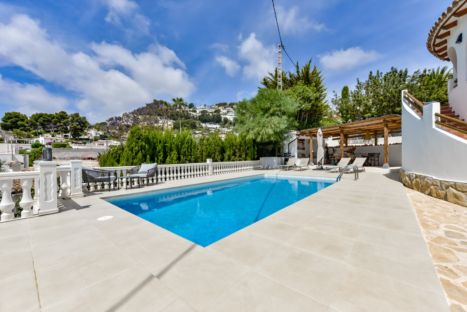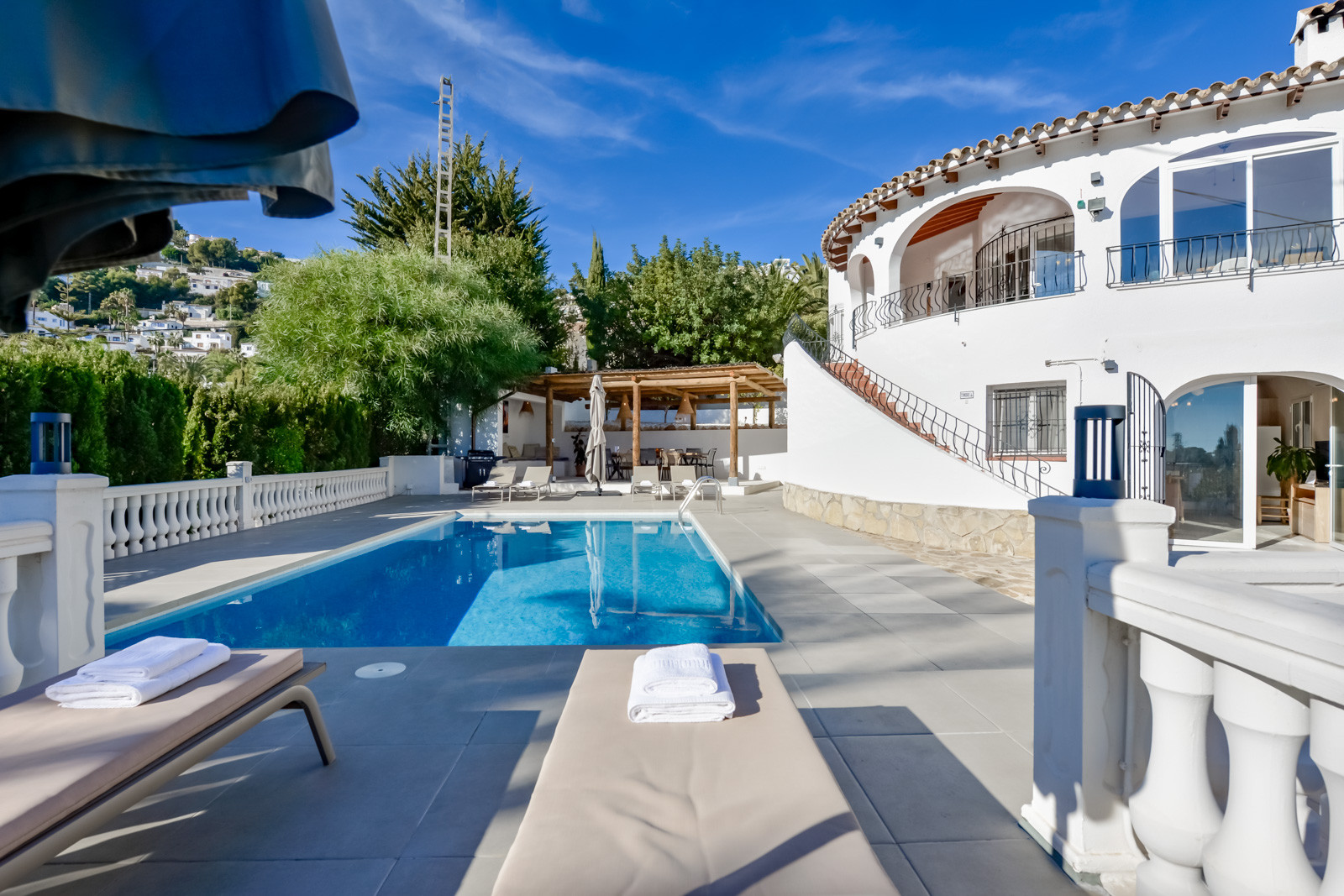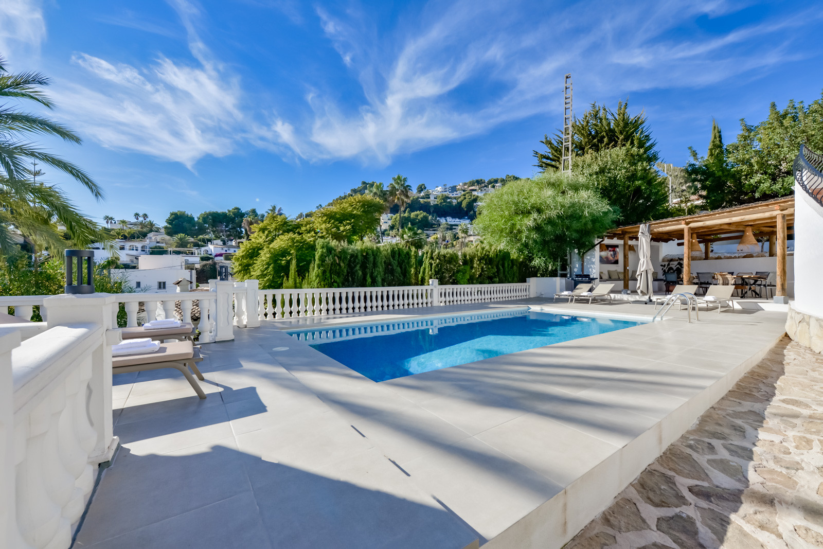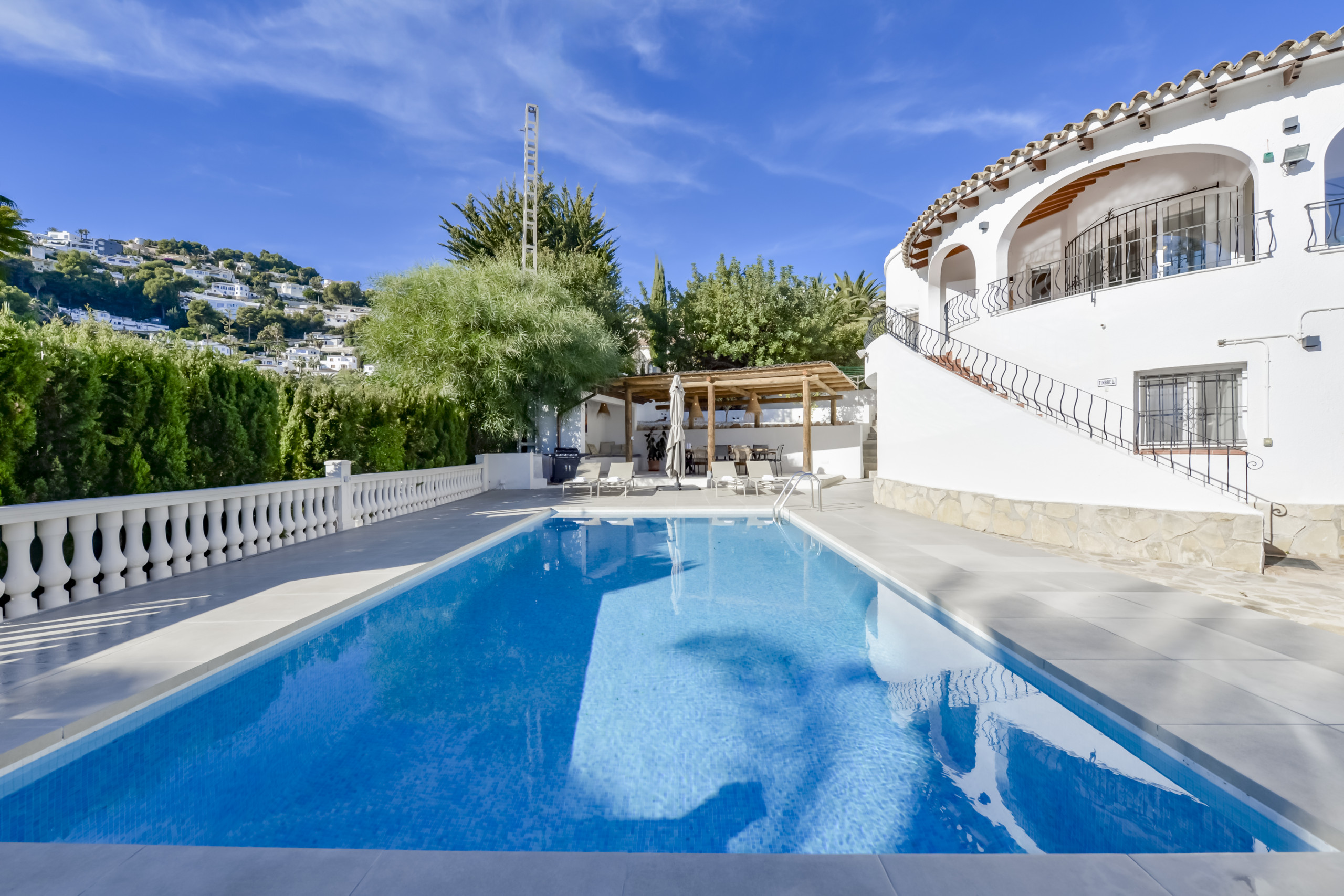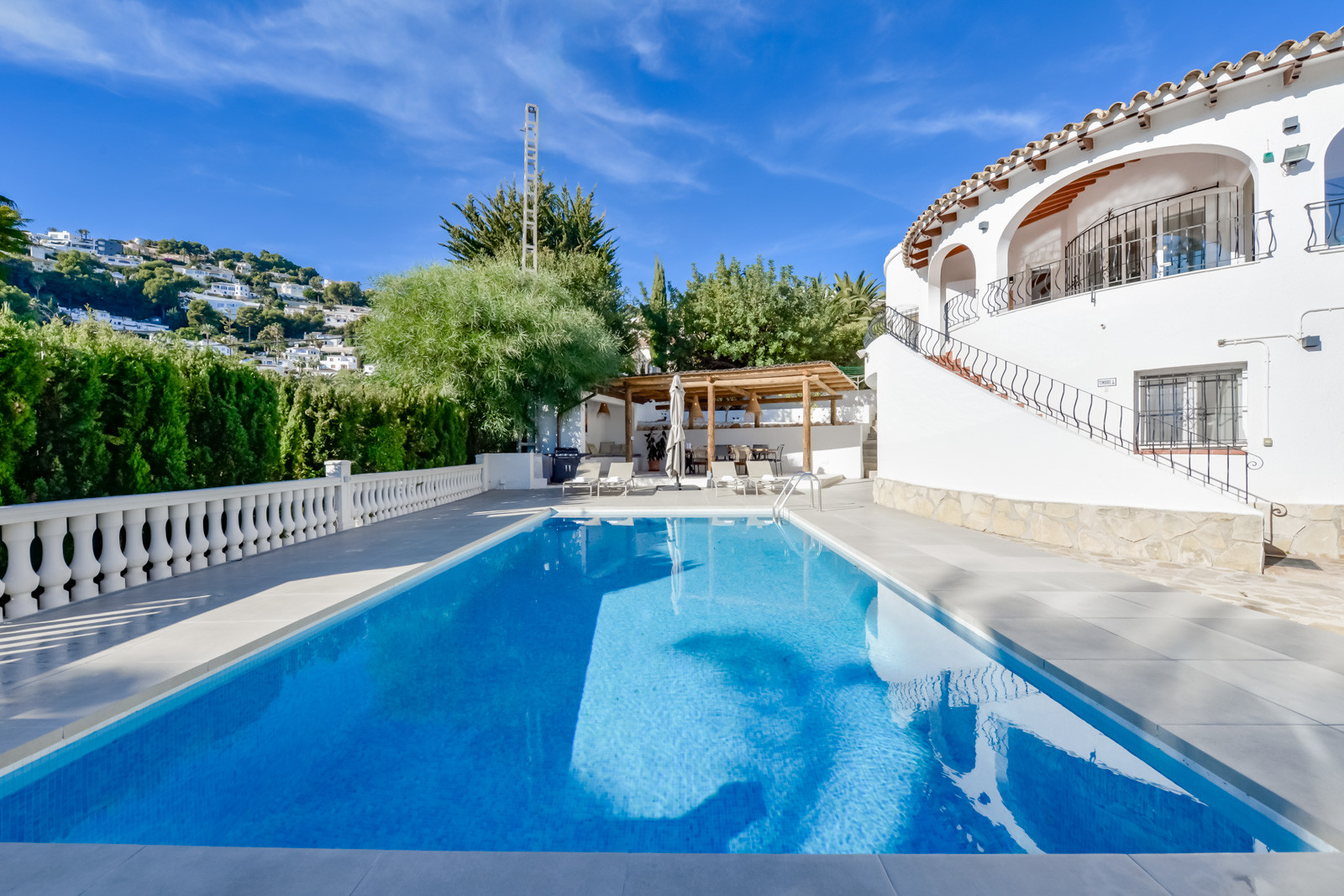 Die Villa Andurina in Moraira ist eine große Villa im spanisch-mediterranen Stil für bis zu 10 Personen. Die großzügigen Räumlichkeiten, die perfekte Ausrichtung und die Nähe zur Stadt Moraira und zum Strand machen diese Villa zu einer großartigen Gelegenheit, einen Urlaub mit allem, was Sie sich wünschen, zu genießen: Freizeit, Entspannung, gute Gastronomie in fußläufiger Entfernung und alles, was Sie während Ihres Aufenthalts benötigen, werden Sie in der Villa Andurina finden.