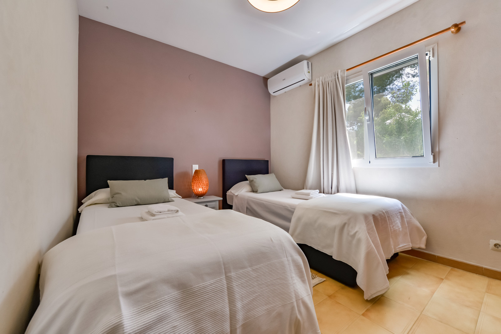 Über eine Innentreppe gelangt man in das Obergeschoss, wo sich ein Schlafzimmer mit zwei Einzelbetten, ein komplettes Bad mit Dusche, ein Schlafzimmer mit zwei Einzelbetten und Klimaanlage und ein sechstes Schlafzimmer mit Doppelbett und Klimaanlage befinden.