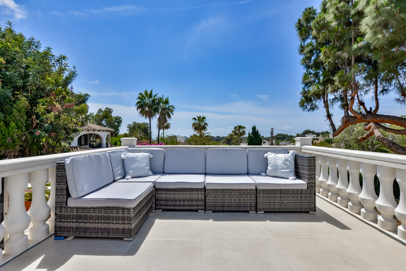 Die Villa Casa Nova, mit 168m² Wohnfläche auf zwei Etagen, hat 5 Schlafzimmer und bietet Platz für bis zu 9 Personen. Eine komfortable und ruhige Villa, wo Komfort und Charme auf Gelassenheit und Spaß treffen. Ihr idealer Rückzugsort für einen unvergesslichen Urlaub. Von der großzügigen Dachterrasse und der oberen Etage haben Sie einen herrlichen Meerblick, und in 10 Minuten sind Sie am Strand von Moraira.