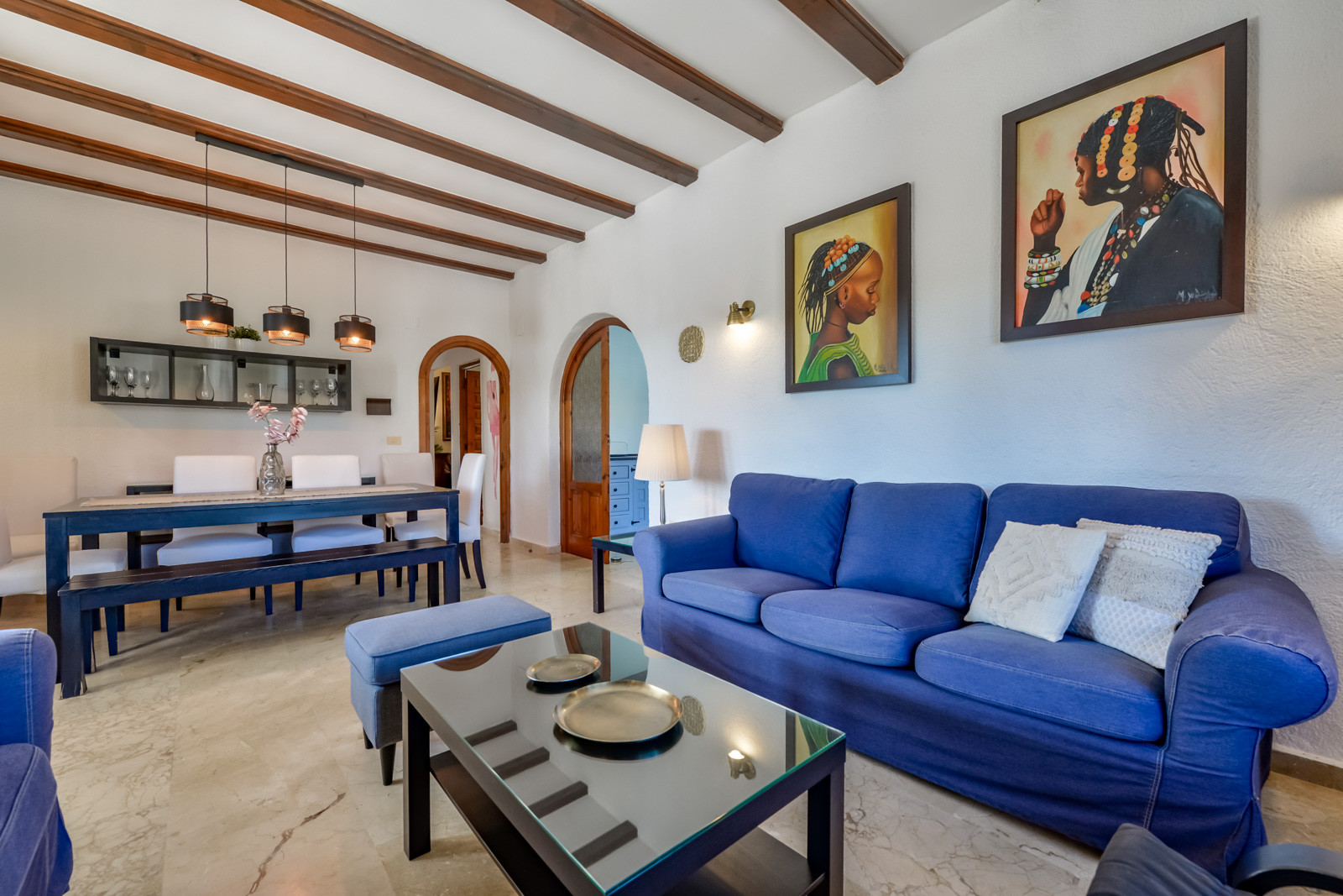 Die Villa Casa Nova, mit 168m² Wohnfläche auf zwei Etagen, hat 5 Schlafzimmer und bietet Platz für bis zu 9 Personen. Eine komfortable und ruhige Villa, wo Komfort und Charme auf Gelassenheit und Spaß treffen. Ihr idealer Rückzugsort für einen unvergesslichen Urlaub. Von der großzügigen Dachterrasse und der oberen Etage haben Sie einen herrlichen Meerblick, und in 10 Minuten sind Sie am Strand von Moraira.
