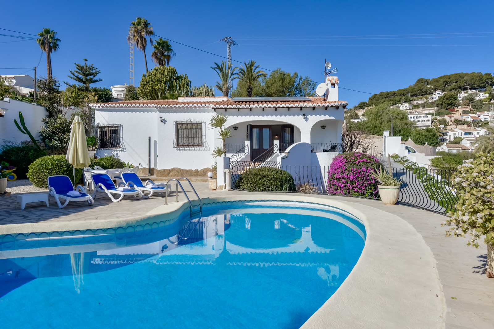 Die Fina Villa in Moraira verfügt über 4 Schlafzimmer und bietet Platz für 8 Personen, in einer der ruhigsten Gegenden von Moraira und mit herrlichem Blick auf das Meer. Es zeichnet sich durch seine Zugänglichkeit auf einer Etage aus und verfügt über mehrere große Duschen mit Haltegriffen und großen Räumen.