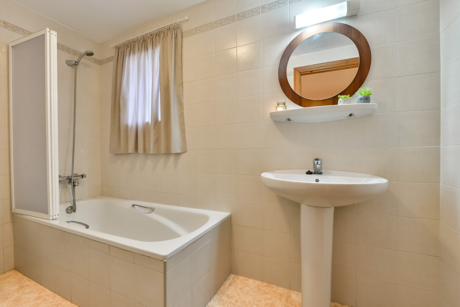 In the lower part of the villa and at street level, we find two independent rooms, one with a double bed, ceiling fan and a bathroom with bathtub and shower and a washing machine room. and a second independent room with a small living room, an auxiliary kitchen, a bedroom with two single beds and an en suite bathroom with bathtub.