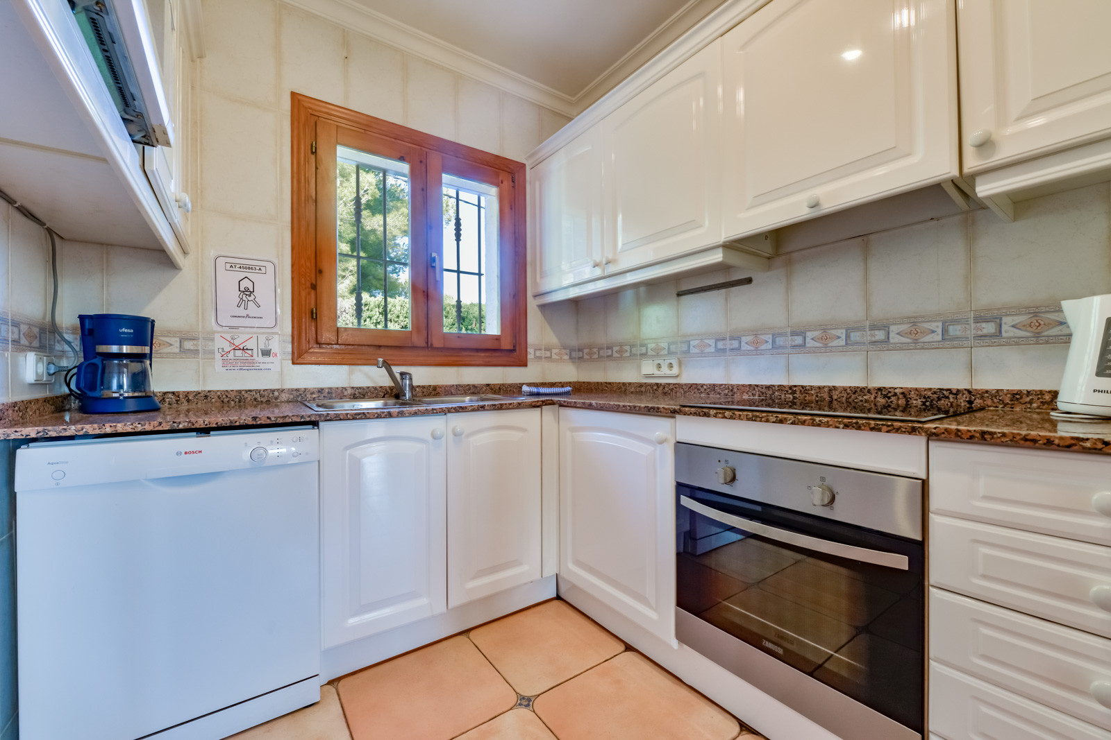 The independent electric kitchen is equipped with refrigerator, microwave, oven, freezer, washing machine, dryer, dishwasher, dishes/cutlery, kitchen utensils, coffee machine, toaster and kettle.