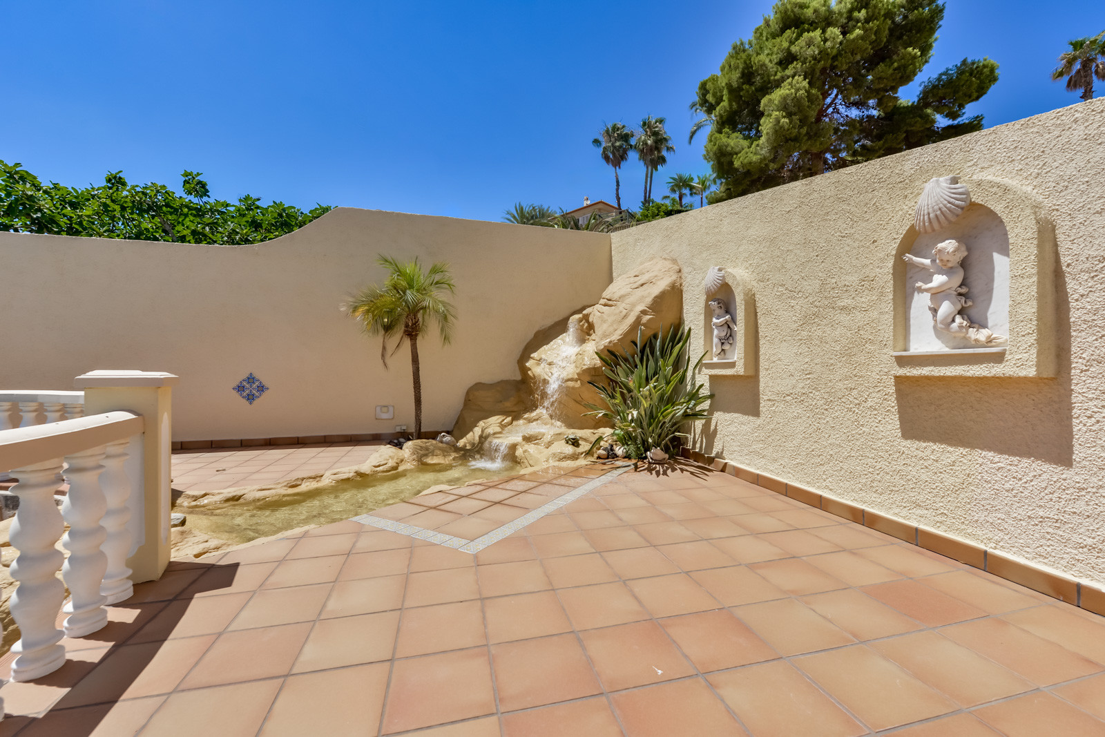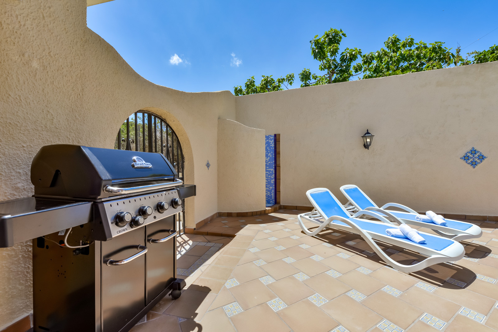 The villa has a large terrace with that and chairs for dining and eating outside under cover, a sun lounger area for sunbathing and a nice pool with comfortable stairs to access inside, and the element that gives name to the villa, the nice waterfall, which decorates and makes special the whole pool area. A gas barbecue and outdoor shower for the pool.