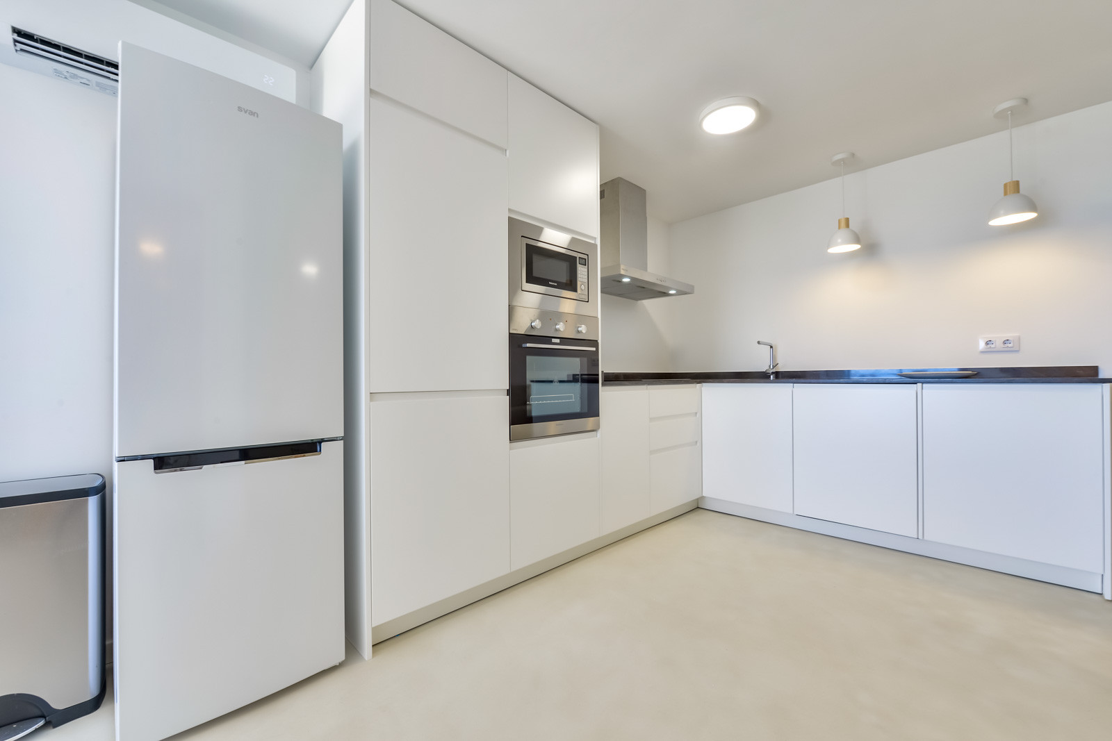 The open-plan kitchen is equipped with refrigerator, microwave, oven, freezer, dishwasher, crockery/cutlery, utensils/kitchen, coffee maker, toaster and kettle.