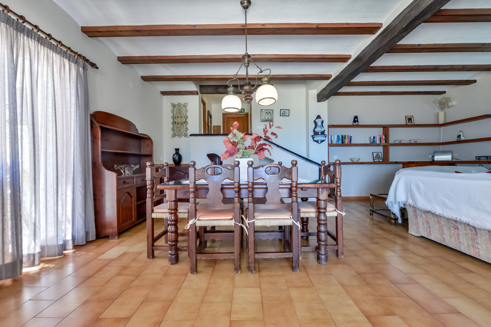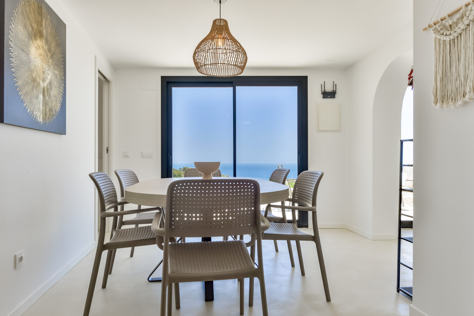With 258 m². of housing, the villa is distributed over two floors connected by an interior staircase. On the main floor we find a large naya with an old decorative fireplace oven, a large table for eating and dining outside next to the pool. From the naya, access is gained to a spacious living room with sofa and tv area, air conditioning, wide distribution spaces, a bedroom with a double bed, en-suite bathroom with shower and exit to the beautiful naya. A fully equipped kitchen with dining area and exit to a cosy and beautiful terrace with spectacular sea views and table for breakfast looking at the sea watching the sunrise. Going up a flight of stairs we access the upper floor with a second bedroom with two single beds, air conditioning, and exit to a pleasant terrace with open sea views, a third bedroom with double bed, air conditioning, en-suite bathroom with shower and a private terrace. On the same floor we find a full bathroom with bathtub and a fourth bedroom with double bed with air conditioning and a small terrace. The fifth bedroom is located outside and is completely independent.