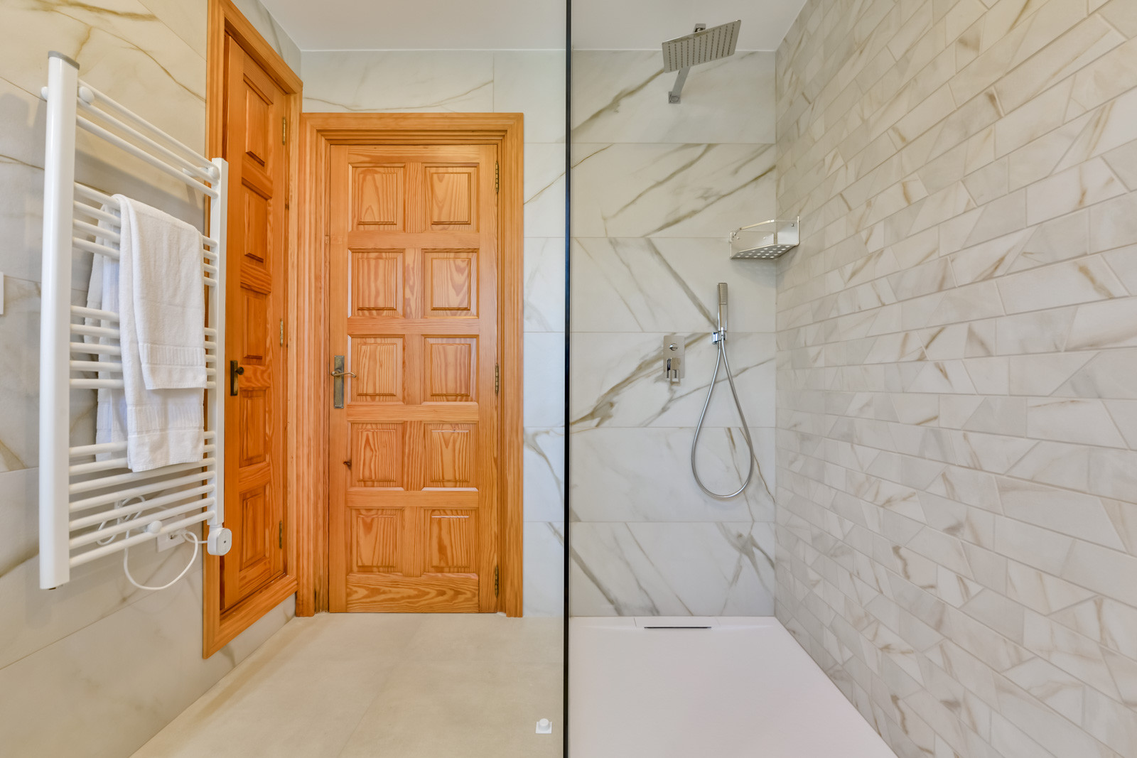 From the main floor there is access to the swimming pool which has stairs to access inside, a sunbeds area and table with umbrella to eat or dine outdoors and outdoor shower with hot water from solar energy. From the pool you can enjoy beautiful sea views with total independence and privacy.