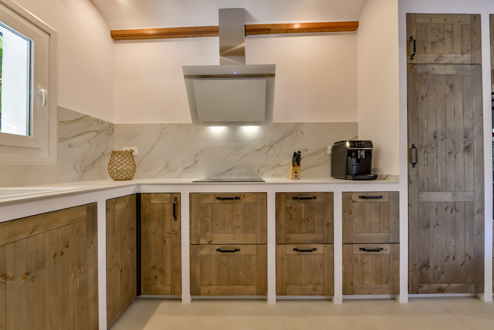 The kitchen is independent and induction, it is equipped with fridge, microwave, oven, freezer, washing machine, dishwasher, crockery/cutlery, kitchen utensils, coffee machine and toaster.