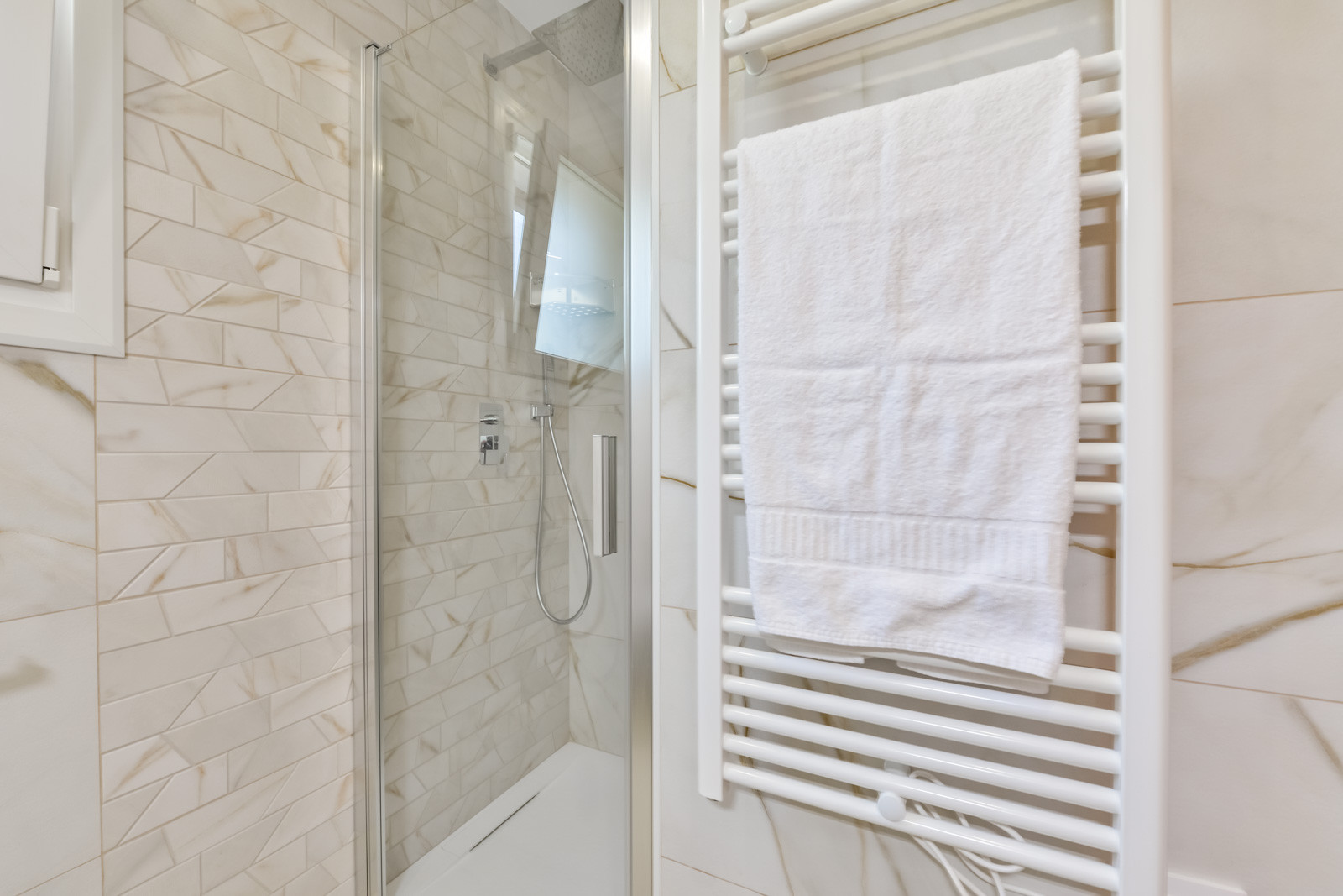 With 1,144 m2 of plot, the villa has several terraces for al fresco dining and dining. From the top floor terrace, a spiral staircase leads to a lovely solarium with outdoor sofas to relax and enjoy the beautiful sea views from a private and very quiet spot, perfect for summer evenings. The pool area has sun loungers for sunbathing, outdoor shower, and a covered porch. Gas barbecue and ample outdoor space for several vehicles inside the plot.
