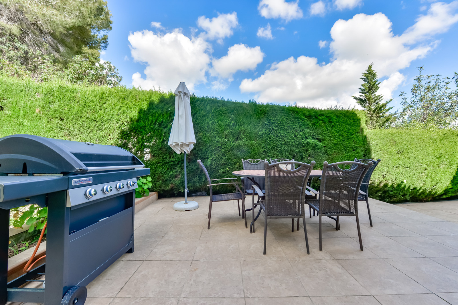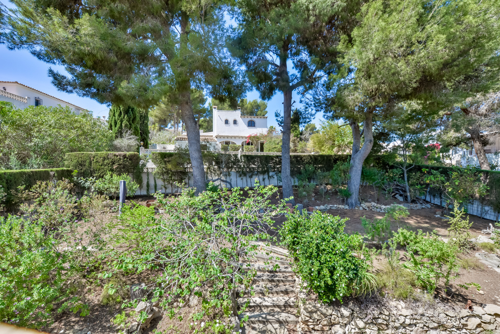 With 1,000 m2 of plot, and plenty of privacy, the villa offers several spaces to enjoy the outdoors. From the living room we access a covered terrace with garden sofas and a pleasant open view of the entire beautiful residential area, going down a flight of stairs we reach the pool area with natural grass, an outdoor shower, and 6 hammocks for sunbathing next to the water. At the back of the villa, we will find a nice pond with fish, a large space with mature trees, and a BBC area with table and chairs for 6 people. The villa has space for outdoor parking inside. It is located 2 m from the rocky beach, 2 km from the town “Moraira”, 2 km from the restaurant “Brevis”, 2 km from the supermarket, 2 km from the sandy beach “Playa de Moraira”, 4 km from the golf course “Club de Golf Ifach”.