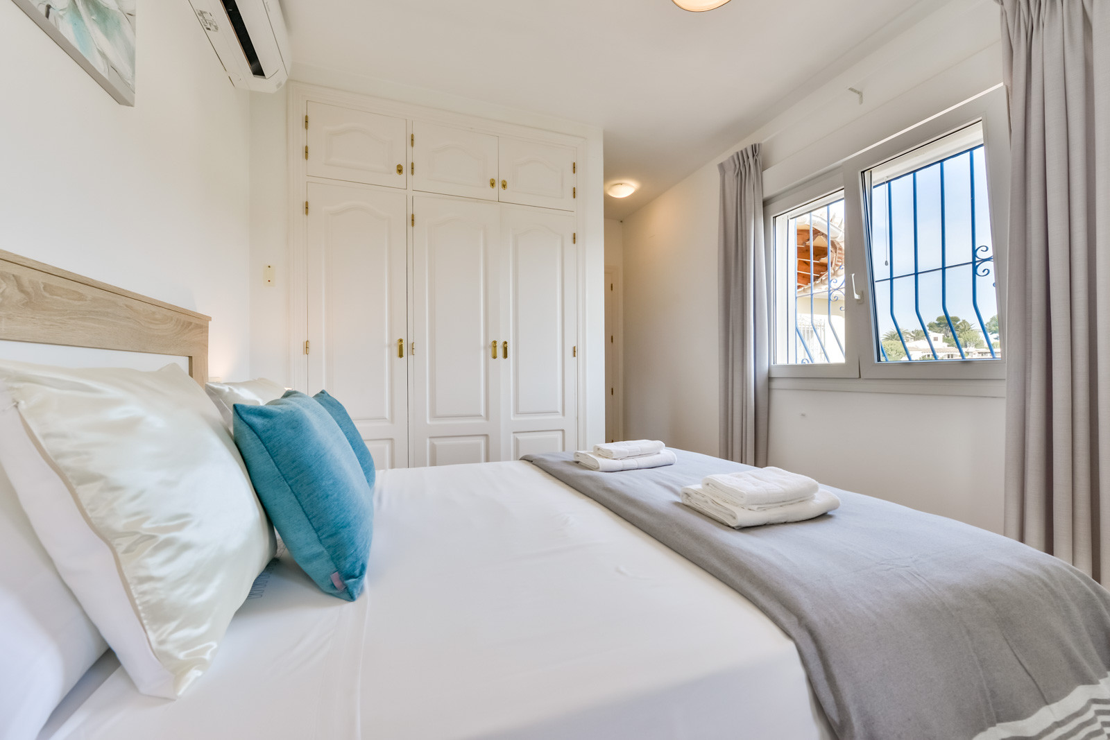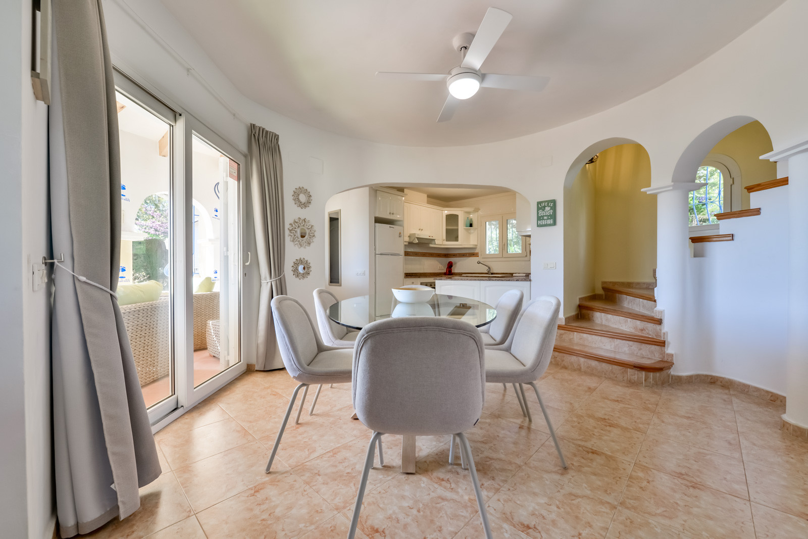 The villa Cleo, in Moraira has 3 bedrooms and has capacity for 6 people. With a beautiful natural grass garden and lots of native vegetation, in a very quiet environment, Cleo is a perfect villa for families who want to rest and have a real vacation next to the Mediterranean.