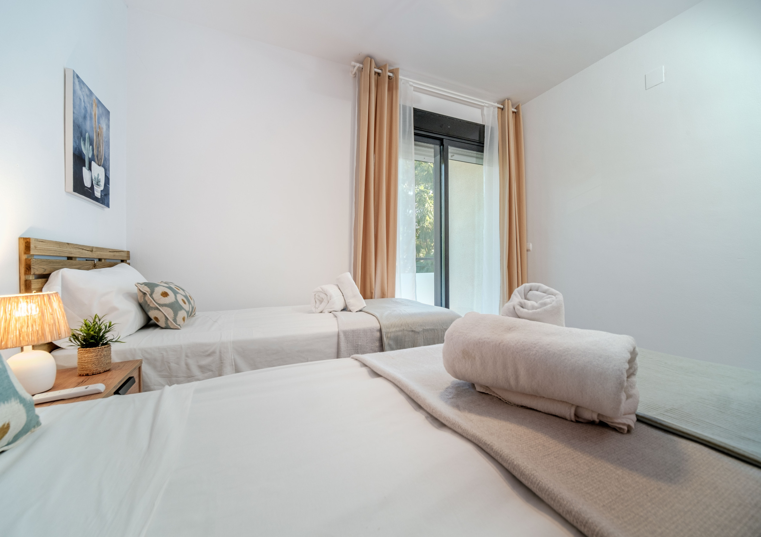 Merveilleux appartement avec deux terrasses, climatisation dans tout le logement et connexion wifi gratuite. Il se trouve dans la résidence Santa Bárbara, qui offre une piscine communautaire pour adultes et enfants, ainsi qu'une douche extérieure et un jardin avec pelouse. Il est parfaitement situé dans un quartier calme et familial, à seulement 5 minutes à pied de la plage rocheuse de Montañar I, et près de tous les services tels que bars, restaurants et activités.