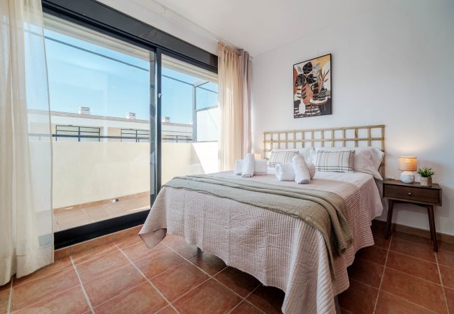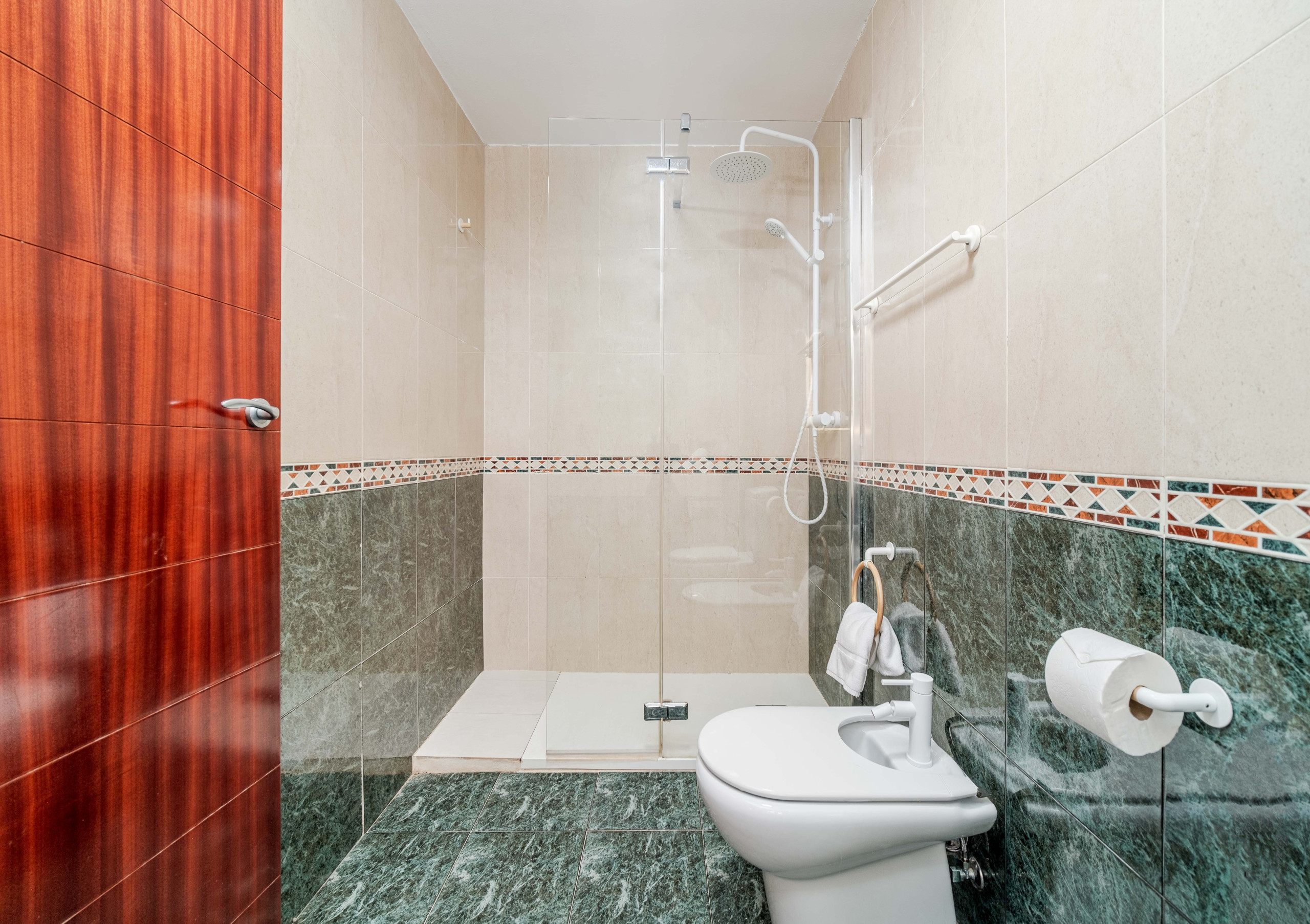À l'étage principal se trouvent trois chambres : une avec un lit de 140x200 et deux avec des lits doubles de 160x200, toutes avec ventilateurs de plafond et armoires. La chambre principale dispose d'une salle de bain attenante et d'un accès à la terrasse. Au même étage, il y a une autre salle de bain complète avec douche et une cuisine américaine moderne avec plaque à induction, entièrement équipée avec réfrigérateur, four, micro-ondes, congélateur, lave-vaisselle, vaisselle et couverts, cafetière filtre, cafetière Dolce Gusto, grille-pain, bouilloire, presse-agrumes et tous les ustensiles nécessaires.