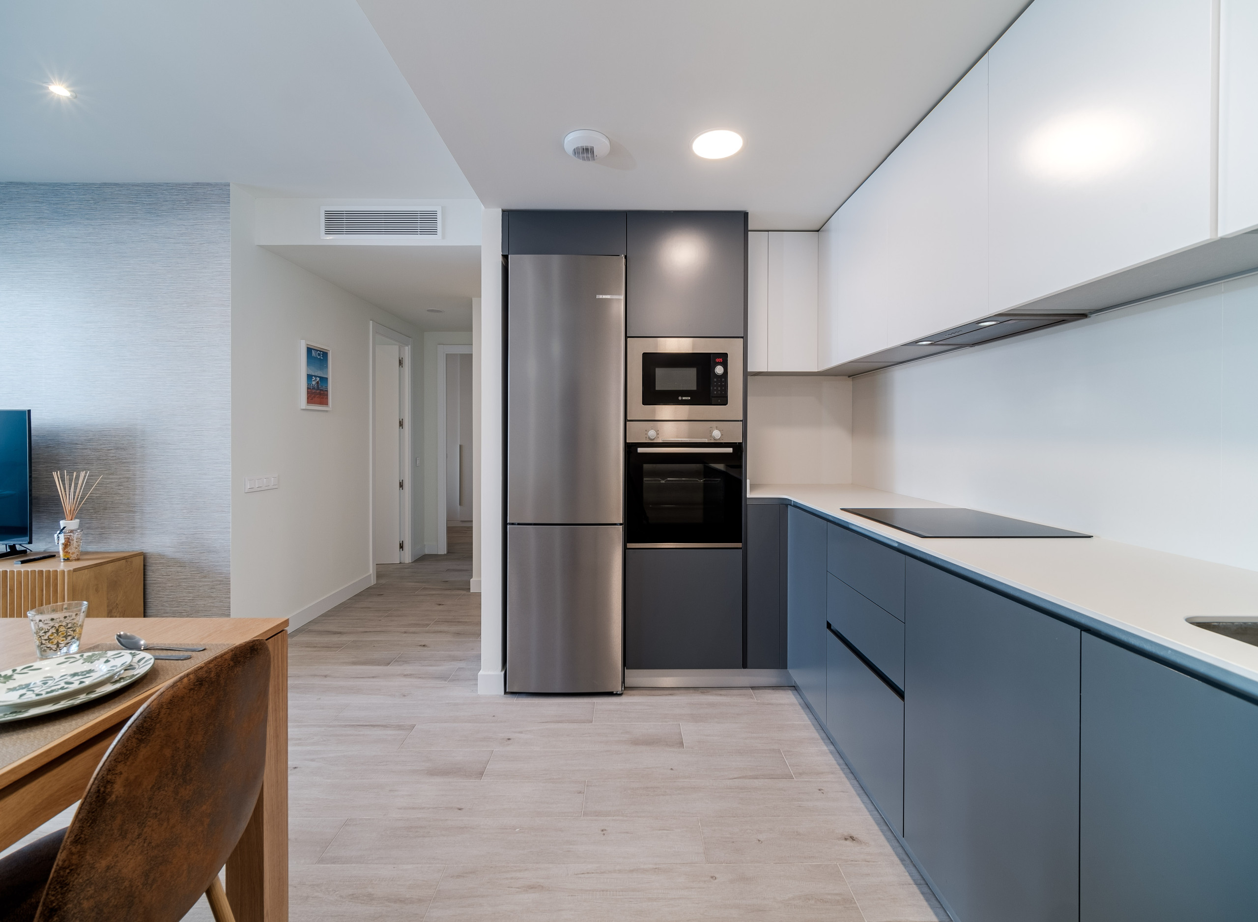 Cet appartement de construction récente se distingue par son design contemporain, ses finitions haut de gamme et sa décoration soignée. Il peut accueillir jusqu'à 4 personnes et dispose de deux salles de bains et de deux chambres confortables : une avec un lit queen size et l'autre avec deux lits individuels, offrant une disposition pratique et accueillante pour les familles.