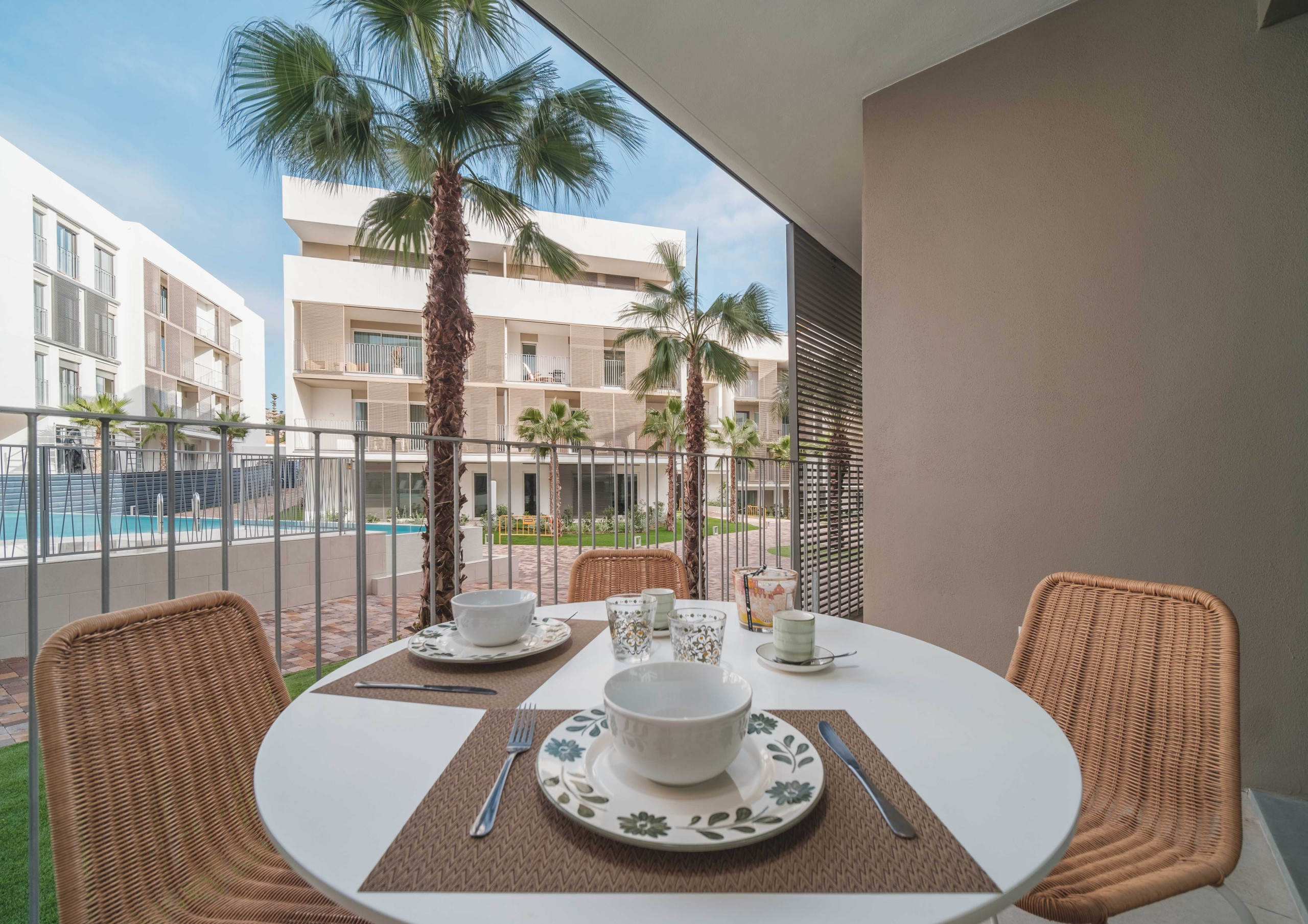 À l'extérieur, elle offre une grande terrasse privée de 35 m², meublée et avec des vues agréables sur la piscine et le jardin communautaire, parfaite pour profiter du climat méditerranéen.
