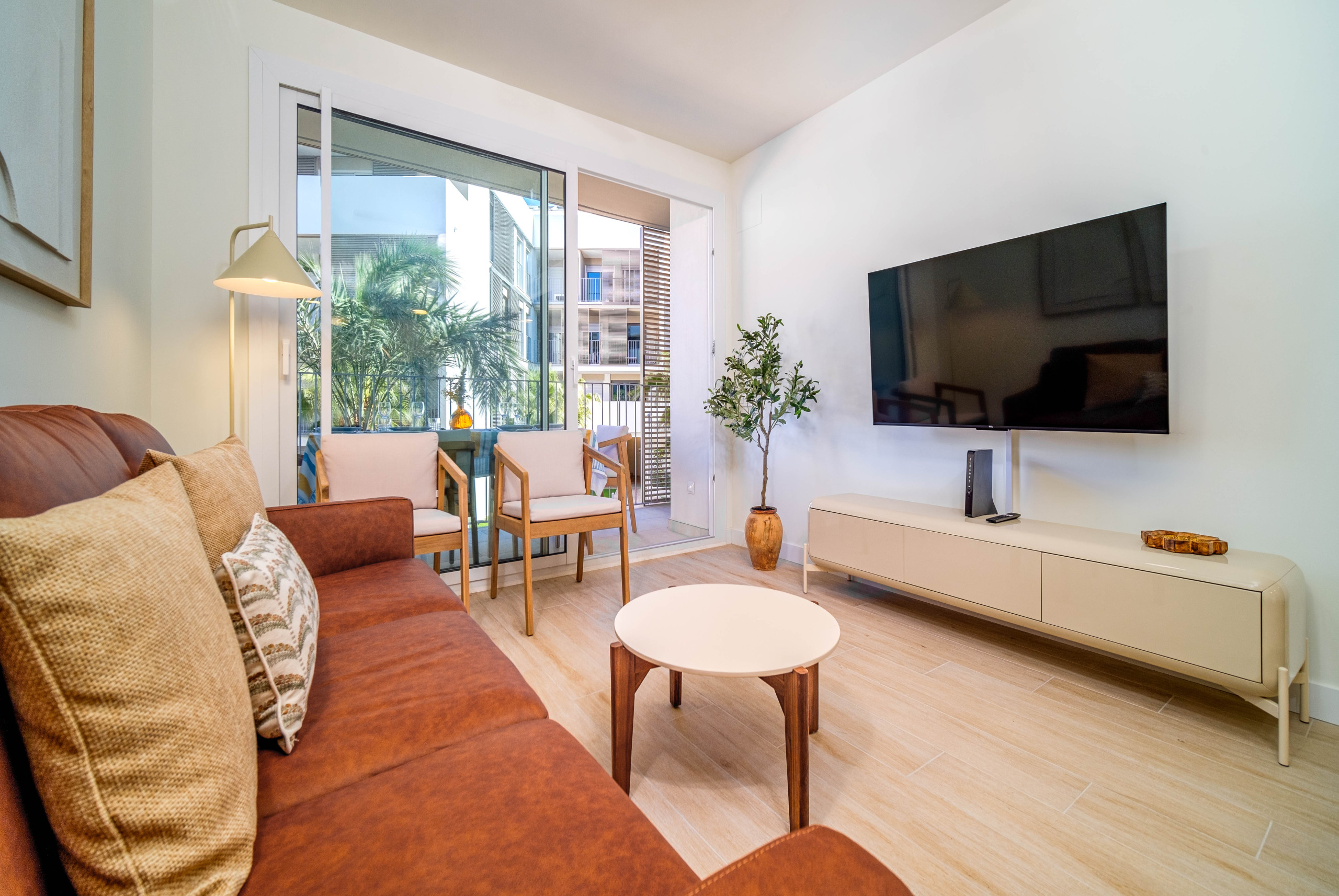 Ce bel appartement moderne et lumineux de 71 m² a été récemment rénové et décoré. Le logement, réparti sur un seul niveau, dispose de 2 magnifiques chambres et 1 salle de bain avec douche, pouvant accueillir jusqu'à 4 personnes. La chambre principale est équipée d'un lit queen size, d'un placard et d'un accès direct à la terrasse : la deuxième chambre possède deux lits individuels. L'appartement propose également une cuisine américaine moderne et entièrement équipée avec réfrigérateur, micro-ondes, four, congélateur, lave-linge, vaisselle et couverts, ustensiles de cuisine, cafetière, grille-pain, bouilloire, et assiettes et bols. Le salon, décoré avec goût, dispose d'un canapé confortable, d'une TV à écran plat, de la climatisation, du WiFi gratuit et de portes doubles s'ouvrant sur une magnifique terrasse. Sur la terrasse, on peut profiter d'une grande table à manger et d'une vue imprenable sur la piscine, le jardin et la montagne. Dans les espaces communs de la résidence, on peut profiter d'un jardin impressionnant avec pelouse, aire de jeux pour enfants et une grande piscine, clôturée et avec une zone pour enfants.