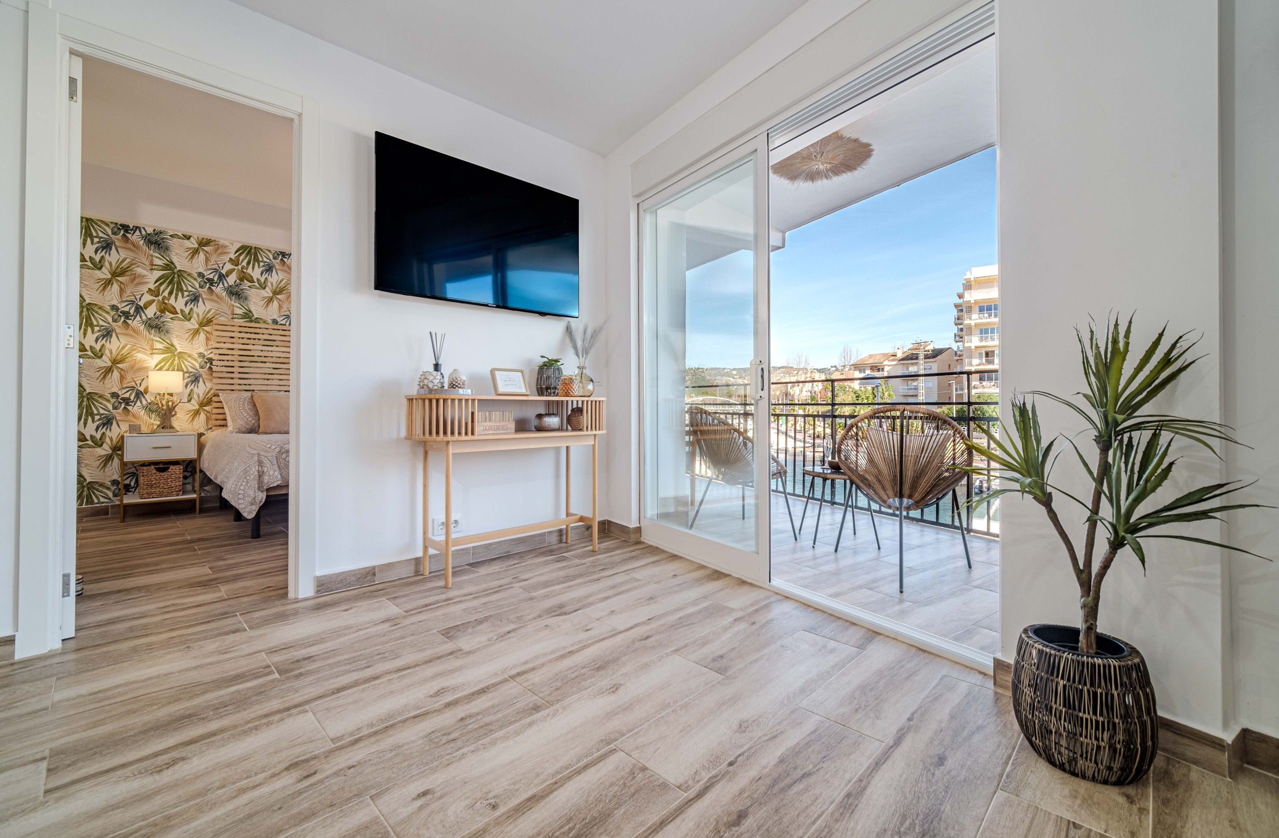 Merveilleux appartement entièrement rénové, avec terrasse privée et agréables vues sur le canal de Nou Fontana. Situé au cœur de l'Arenal de Jávea, à seulement 200 mètres de la plage de l'Arenal, il offre une combinaison parfaite de confort, d'équipement et d'emplacement excellent pour profiter de vacances inoubliables.