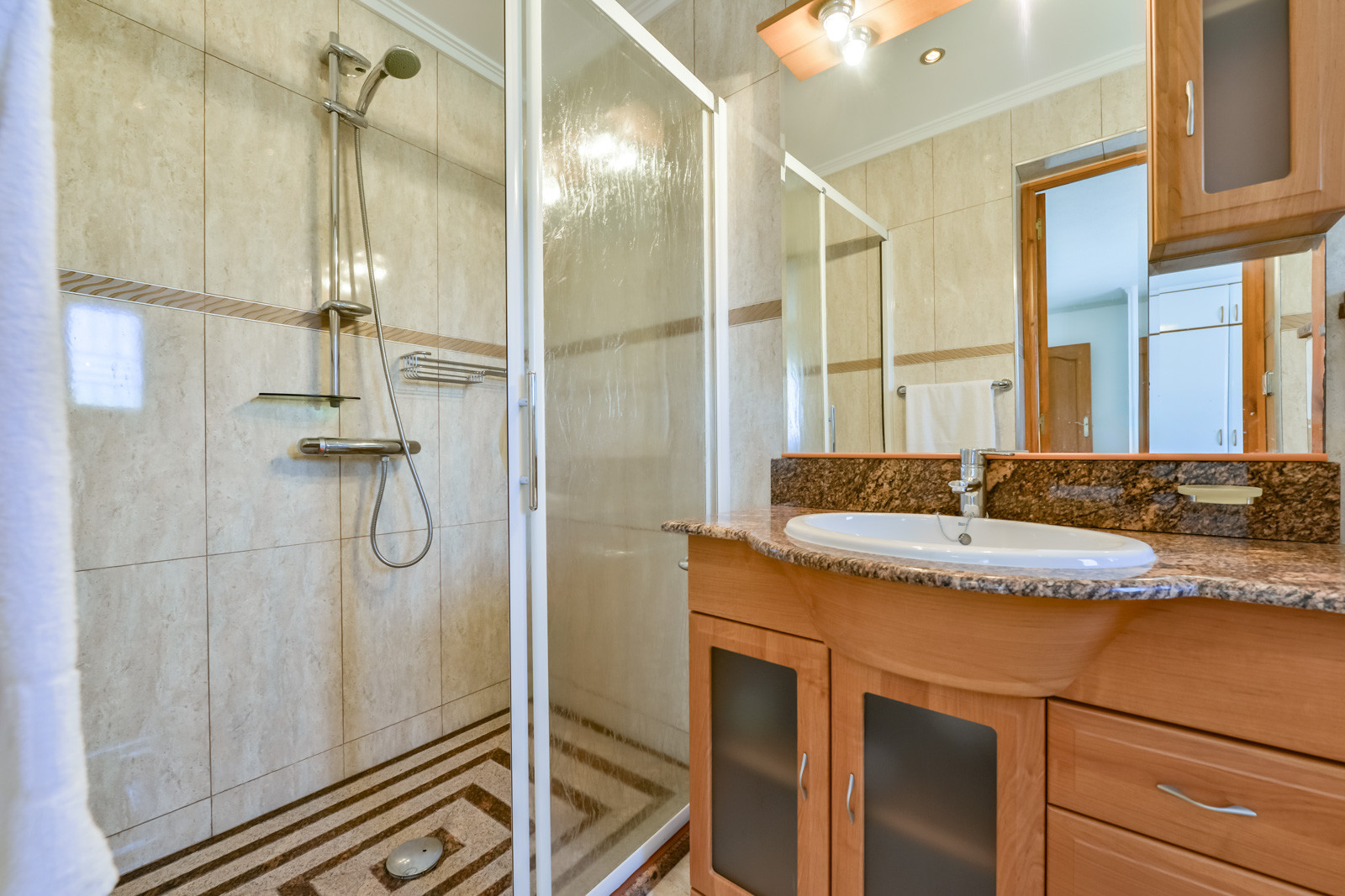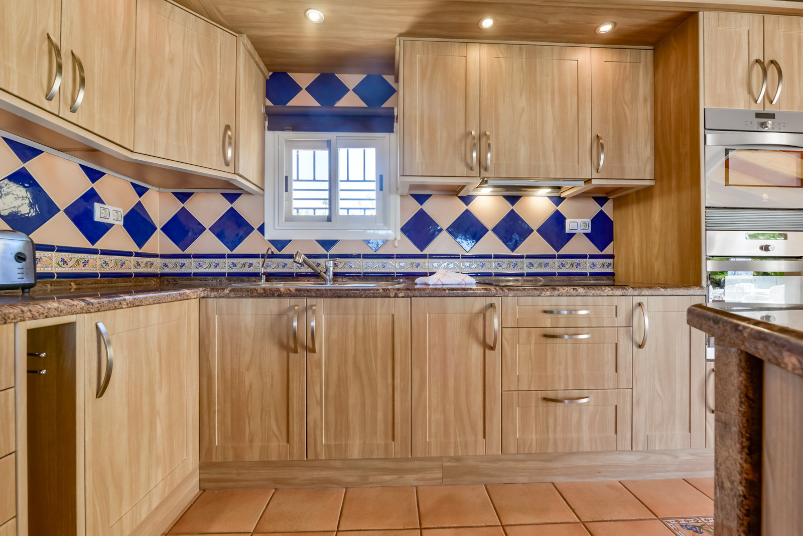 La villa a une surface habitable de 120 m2 et est distribuée sur un seul étage. La première chose que l'on trouve est une petite terrasse vitrée avec beaucoup de lumière naturelle, un réfrigérateur américain à deux portes, et relié par une arche, on trouve le salon avec un canapé, un coin TV et une table pour déjeuner et dîner, une chambre avec un lit double de 135, une deuxième chambre avec un lit double (deux lits simples ensemble), la troisième chambre a également deux matelas simples ensemble. Une salle de bain complète avec baignoire, une cuisine petite mais bien équipée et l'air conditionné centralisé dans toute la maison. Depuis le hall d'entrée, nouvellement construit, on trouve une salle de bain complète avec douche et un accès à la quatrième chambre, avec un lit double et de grandes fenêtres avec accès à la piscine et à la terrasse.
