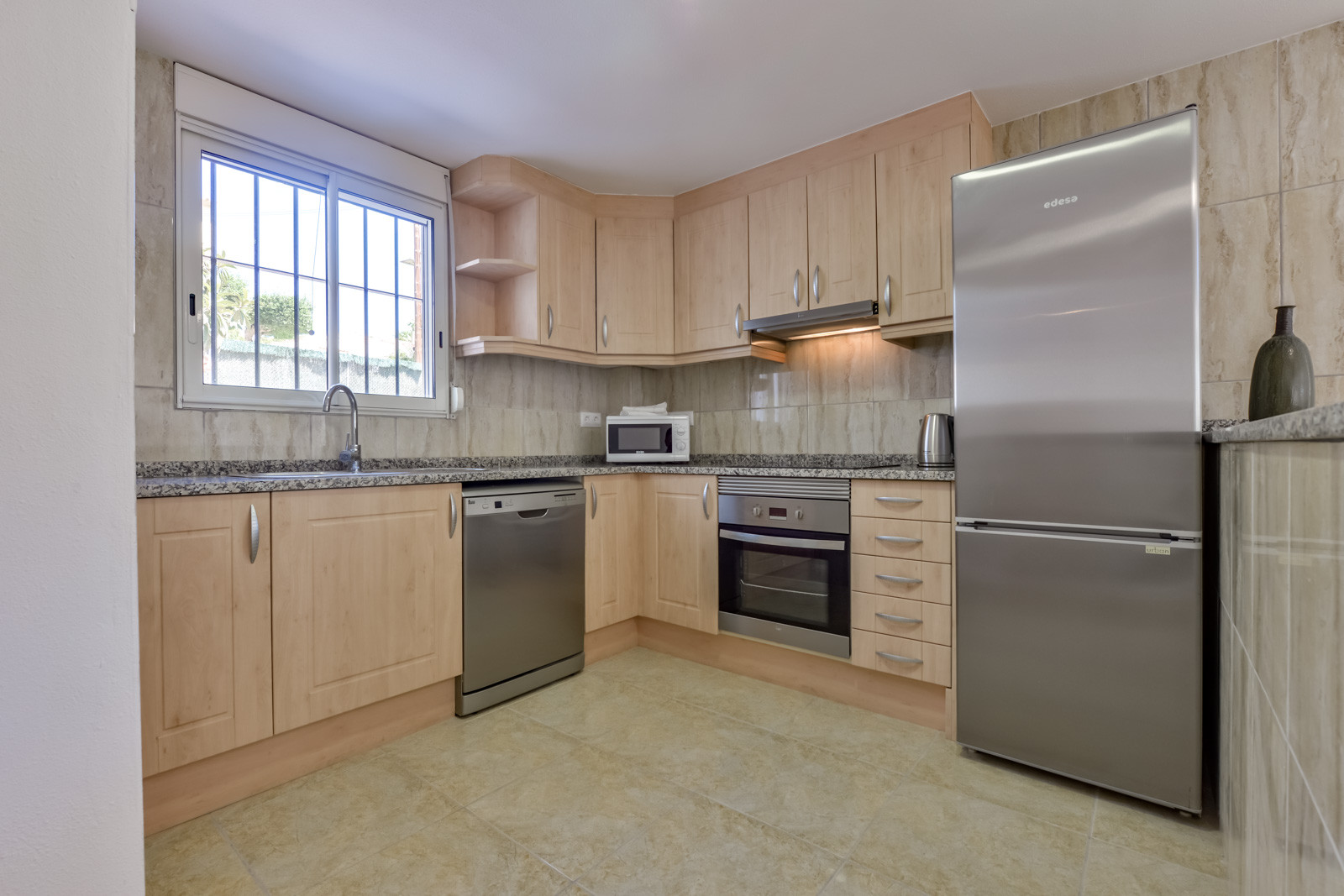 La cuisine est indépendante et à induction, elle est équipée de réfrigérateur, micro-ondes, four, congélateur, lave-linge, lave-vaisselle, vaisselle, ustensiles de cuisine, cafetière et grille-pain.