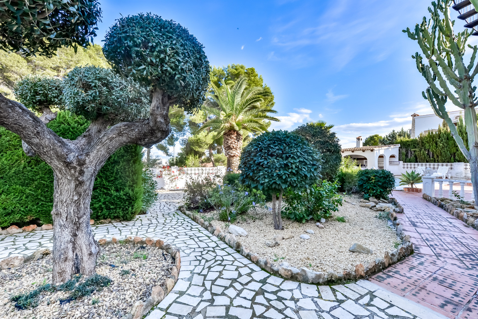 Avec un terrain de 1 144 m2, la villa dispose de plusieurs terrasses pour les repas en plein air. Depuis la terrasse du dernier étage, un escalier en colimaçon mène à un joli solarium avec des canapés d'extérieur pour se détendre et profiter de la vue sur la mer depuis un endroit privé et très calme, parfait pour les soirées d'été. La piscine est équipée de chaises longues, d'une douche extérieure et d'un porche couvert. Barbecue à gaz et vaste espace extérieur pour plusieurs véhicules à l'intérieur du terrain.