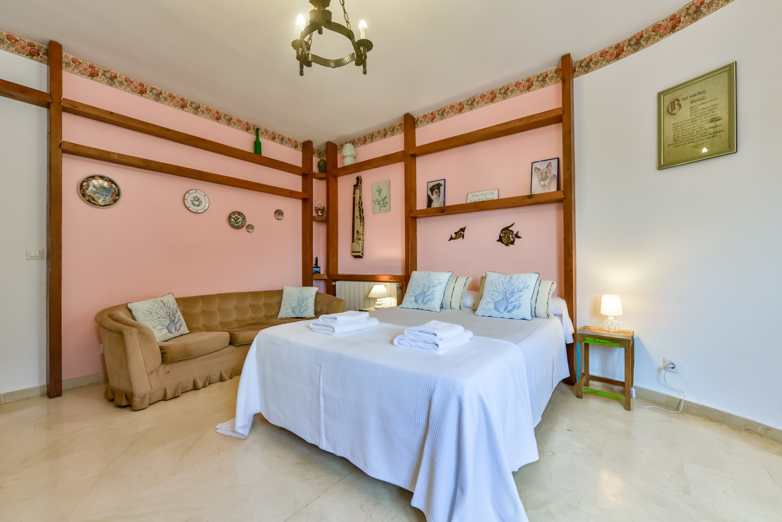 Avec 258 m². de logement, la villa est répartie sur deux étages reliés par un escalier intérieur. Au rez-de-chaussée, nous trouvons une grande naya avec un four-cheminée ancien décoratif, une grande table pour manger à l'extérieur près de la piscine. Depuis la naya, on accède à un grand salon avec une zone de canapé et tv, climatisation, de grands espaces de distribution, une chambre avec un lit de matrimoniale, une salle de bain en suite avec douche et sortie sur la magnifique naya. Une cuisine entièrement équipée avec une zone de salle à manger et sortie sur une terrasse chaleureuse et magnifique avec une vue spectaculaire sur la mer et une table pour petit-déjeuner en regardant la mer et le lever du soleil. En montant un tronçon d'escaliers, on accède à l'étage supérieur avec une deuxième chambre avec deux lits individuels, climatisation et sortie sur une terrasse agréable avec vue ouverte sur la mer, une troisième chambre avec lit double, climatisation, salle de bain en suite avec douche et une terrasse privée. Au même étage, nous trouvons une salle de bain complète avec baignoire et une quatrième chambre avec lit de matrimoniale, climatisation et une petite terrasse. La cinquième chambre se trouve à l'extérieur et est complètement indépendante.
