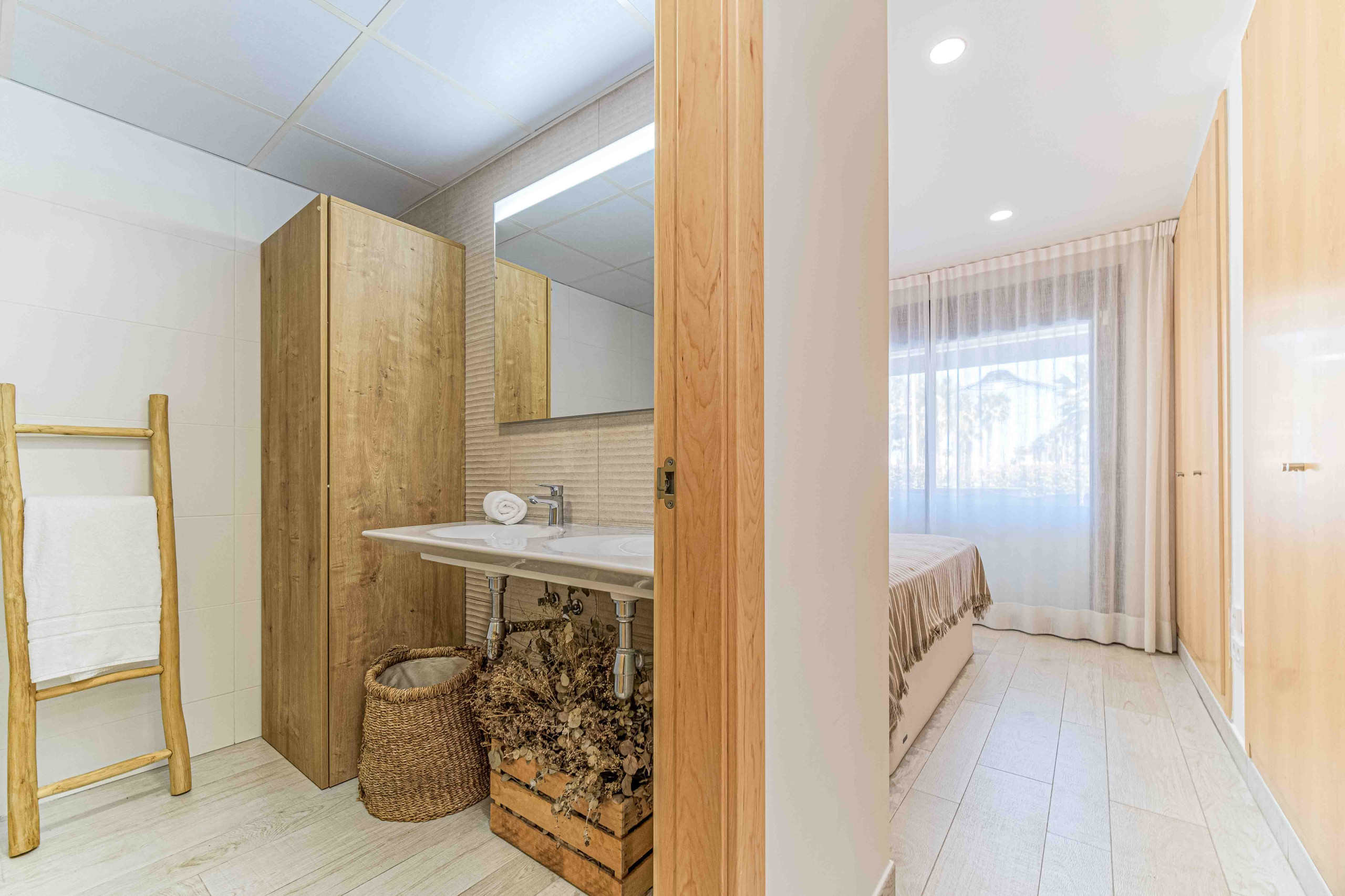 Ce rez-de-chaussée lumineux et accueillant peut accueillir jusqu'à 7 personnes dans ses 3 chambres charmantes. La chambre principale dispose d'un lit matrimonial avec salle de bain attenante et un accès direct à la terrasse. La deuxième chambre comprend des lits superposés et un lit gigogne, tandis que la troisième propose un confortable lit simple avec un autre lit gigogne en dessous. Ces deux chambres partagent une salle de bain complète avec douche. La propriété est entièrement climatisée avec un système de climatisation par conduits.