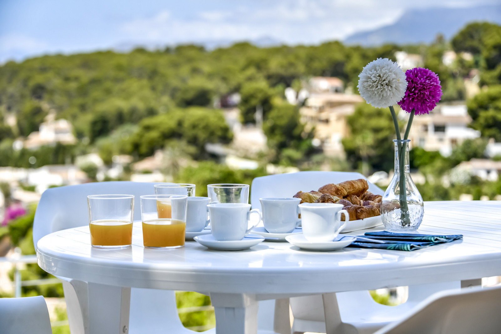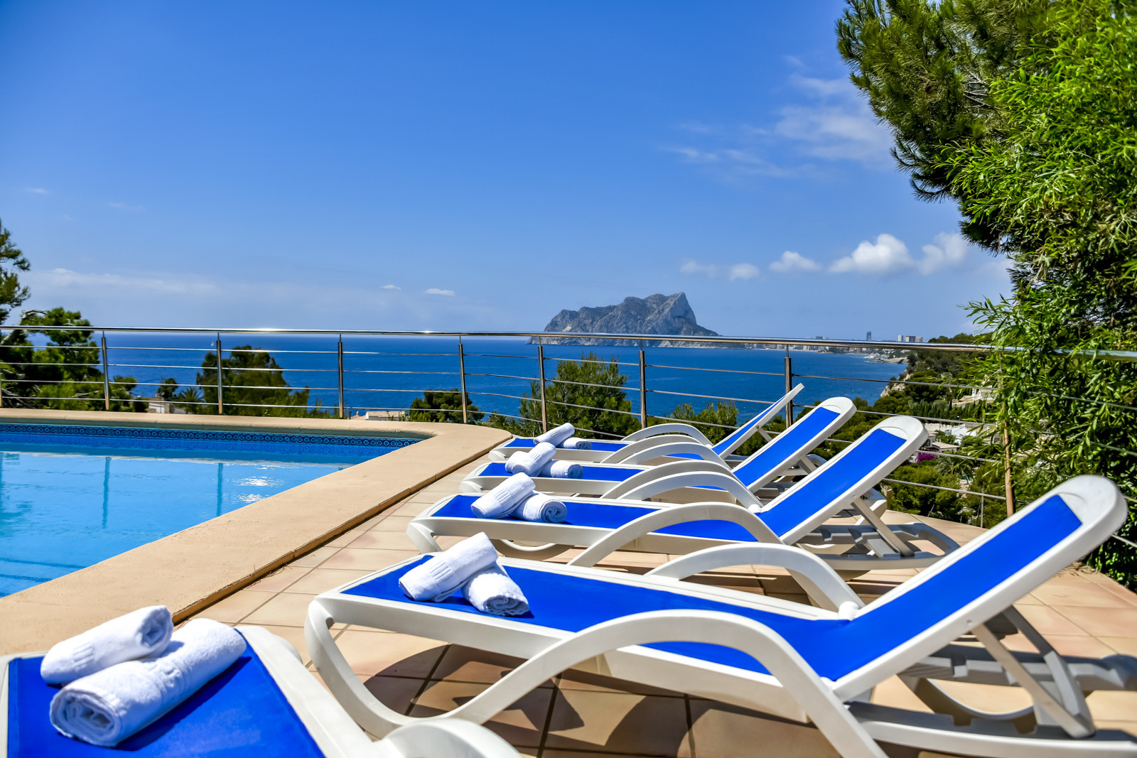 Service, uitzicht, zwembad, mooie keuken en badkamers.
