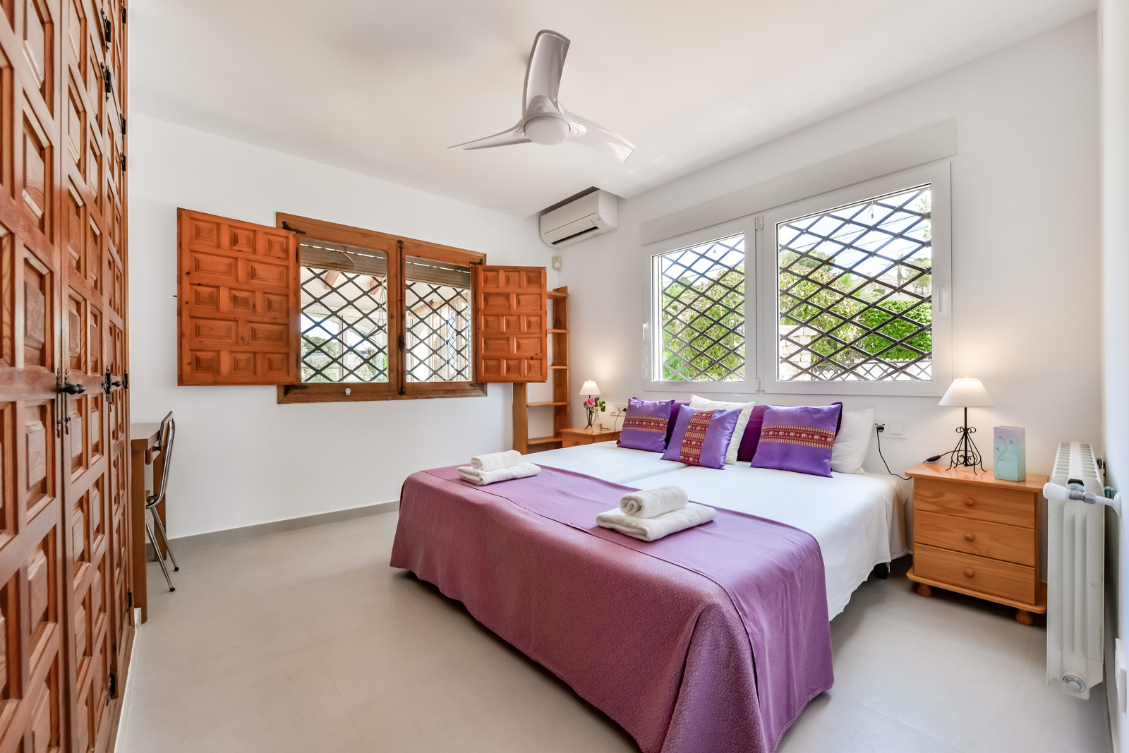 Met 360 m² en prachtig uitzicht op zee is het huis verdeeld over twee onafhankelijke verdiepingen die met elkaar verbonden zijn via een brede en comfortabele buitentrap. Op de eerste of hoofdverdieping vinden we een nieuwe en volledig uitgeruste keuken die leidt naar de woon-eetkamer en tv-hoek met bank, airconditioning en toegang tot een groot terras met een tafel voor 12 personen en prachtig uitzicht op zee. Op dezelfde verdieping vinden we een complete badkamer met douche, een slaapkamer met twee eenpersoonsbedden, tv en airconditioning, een tweede slaapkamer met tv, airconditioning en twee eenpersoonsbedden. Een derde slaapkamer met tweepersoonsbed, eigen badkamer met douche, tv en airconditioning en een vierde slaapkamer met tweepersoonsbed, airconditioning en tv.