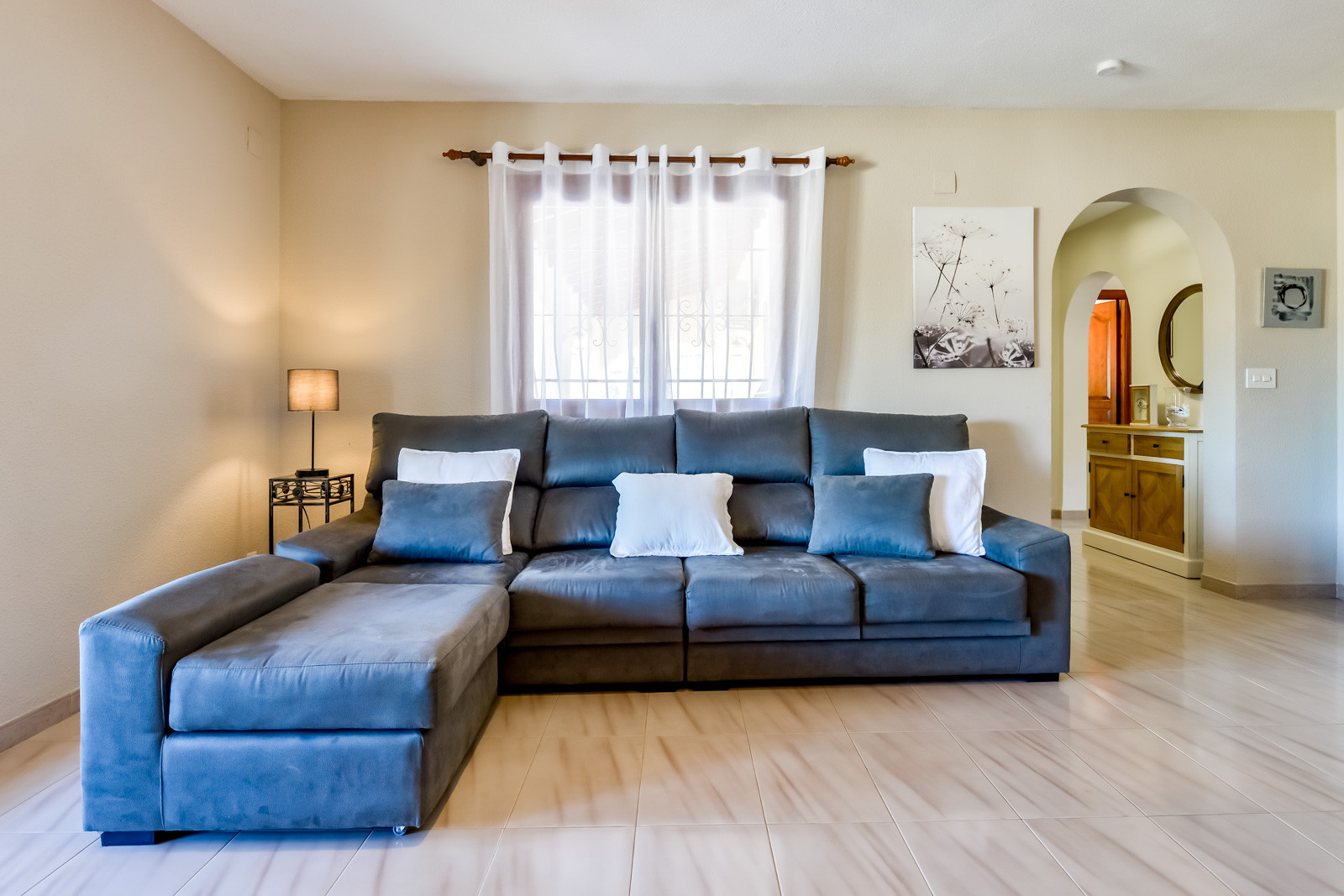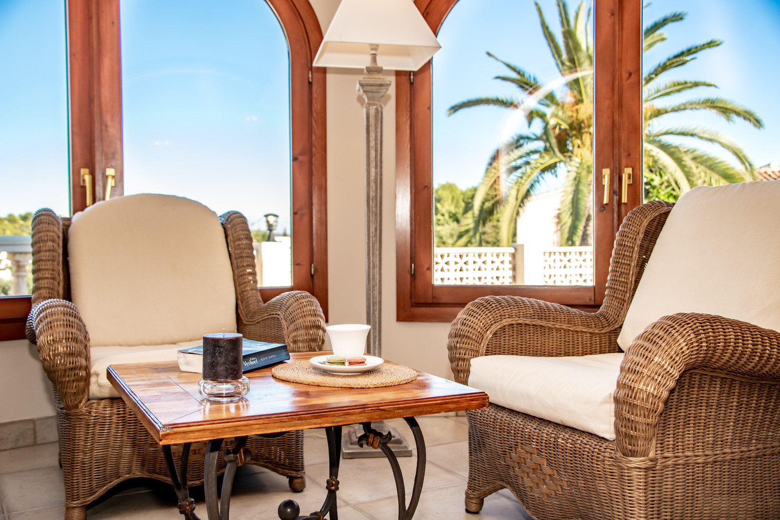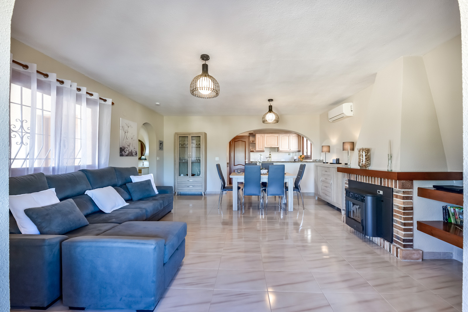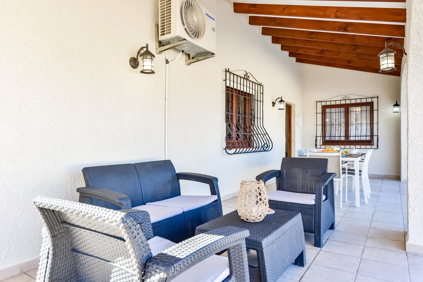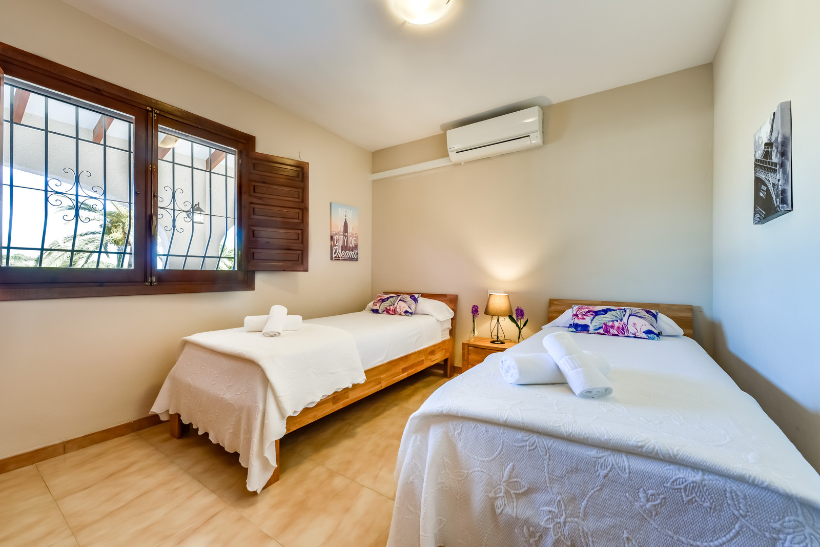 De indeling van de villa Acaepa is als volgt: met 122 m2, in de hoofdwoning vindt u een complete badkamer met douche, een slaapkamer met een tweepersoonsbed, en een tweede slaapkamer met twee eenpersoonsbedden, woonkamer, moderne en volledig uitgeruste keuken en een aangename veranda die u zowel in de zomer als in de winter kunt gebruiken omdat deze volledig overdekt is. Op de bovenverdieping en volledig onafhankelijk met een trap aan de buitenkant, bevindt zich de derde slaapkamer met een comfortabel tweepersoonsbed met open uitzicht op de bergen en de zee, en een badkamer met douche. De villa is in 2019 volledig gerenoveerd en zowel de meubels als de badkamers, keuken etc. zijn gloednieuw. Er is een airconditioning in de woonkamer.