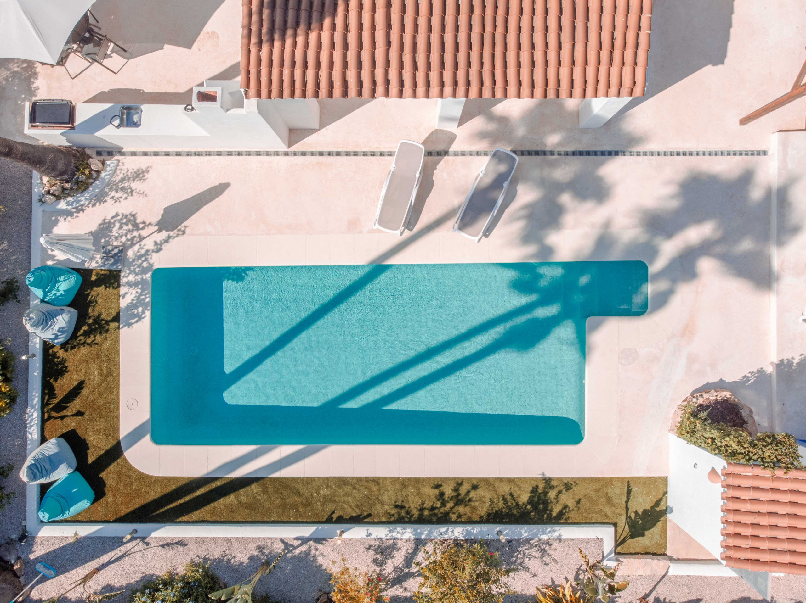 Tevens heeft u de beschikking over Tuin, Tuinmeubilair, Omheind perceel, 40 m² terras, Wasmachine, Droger, Barbecue, Strijkijzer, Internet (wifi), Haardroger, Warmtepomp, Airconditioning in de gehele woning, Privé Zwembad, Openlucht parkeerplaats in het zelfde gebouw, 1 Ventilator, 3 Televisies.